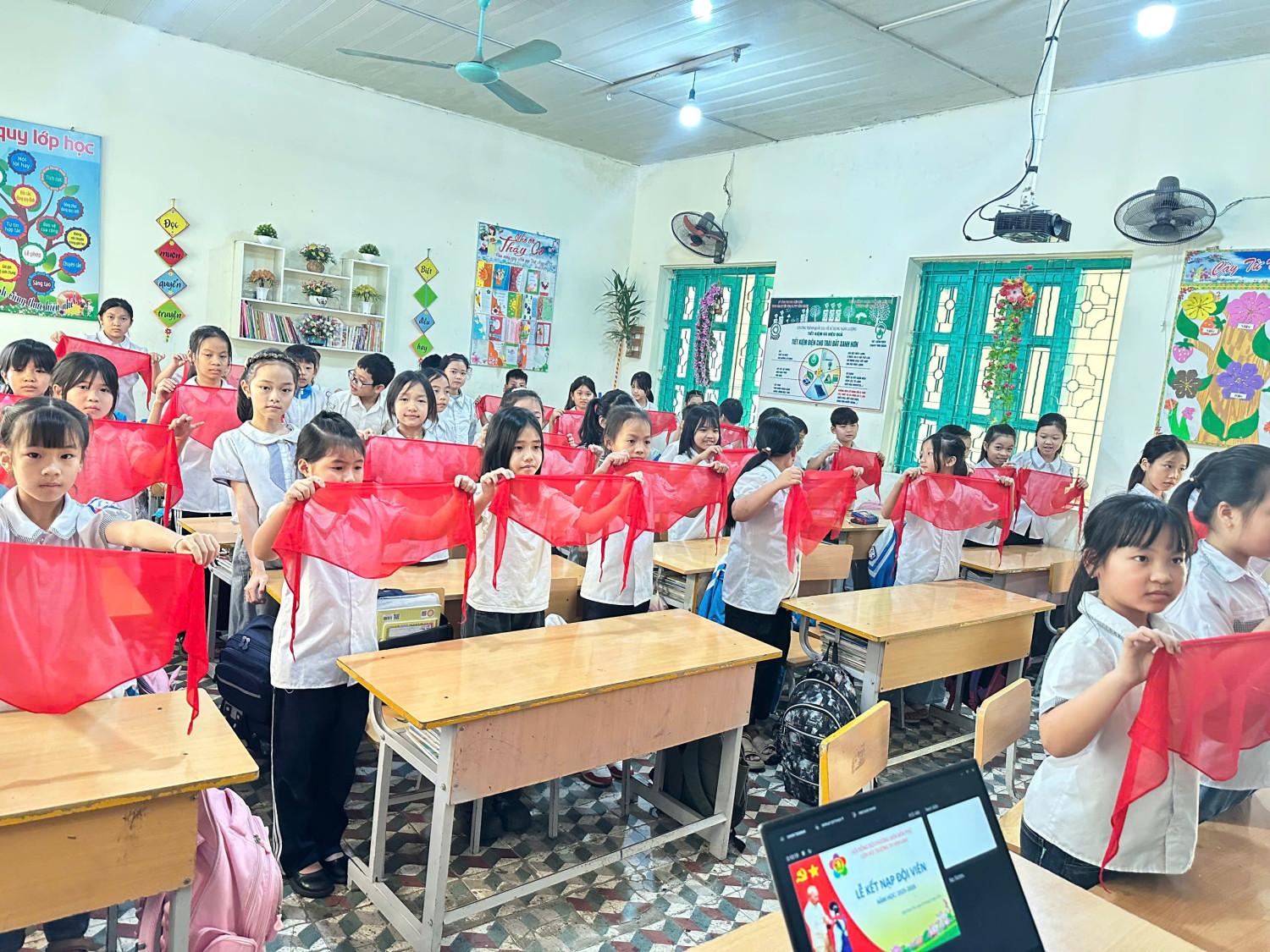 Nổi bật trong chương trình là Lễ kết nạp Đội viên mới dành cho các em học sinh tiêu biểu. Buổi lễ diễn ra trong không khí trang nghiêm, xúc động, đánh dấu bước trưởng thành của các em. Trong đợt này, 112 em thiếu nhi ưu tú đã được vinh dự đứng vào hàng ngũ Đội Thiếu niên Tiền phong Hồ Chí Minh, hứa hẹn trở thành những đội viên gương mẫu, tích cực trong học tập và rèn luyện. Trên vai các em là chiếc khăn quàng đỏ thắm – biểu tượng của niềm tự hào, trách nhiệm và tinh thần phấn đấu không ngừng trong học tập, rèn luyện.
