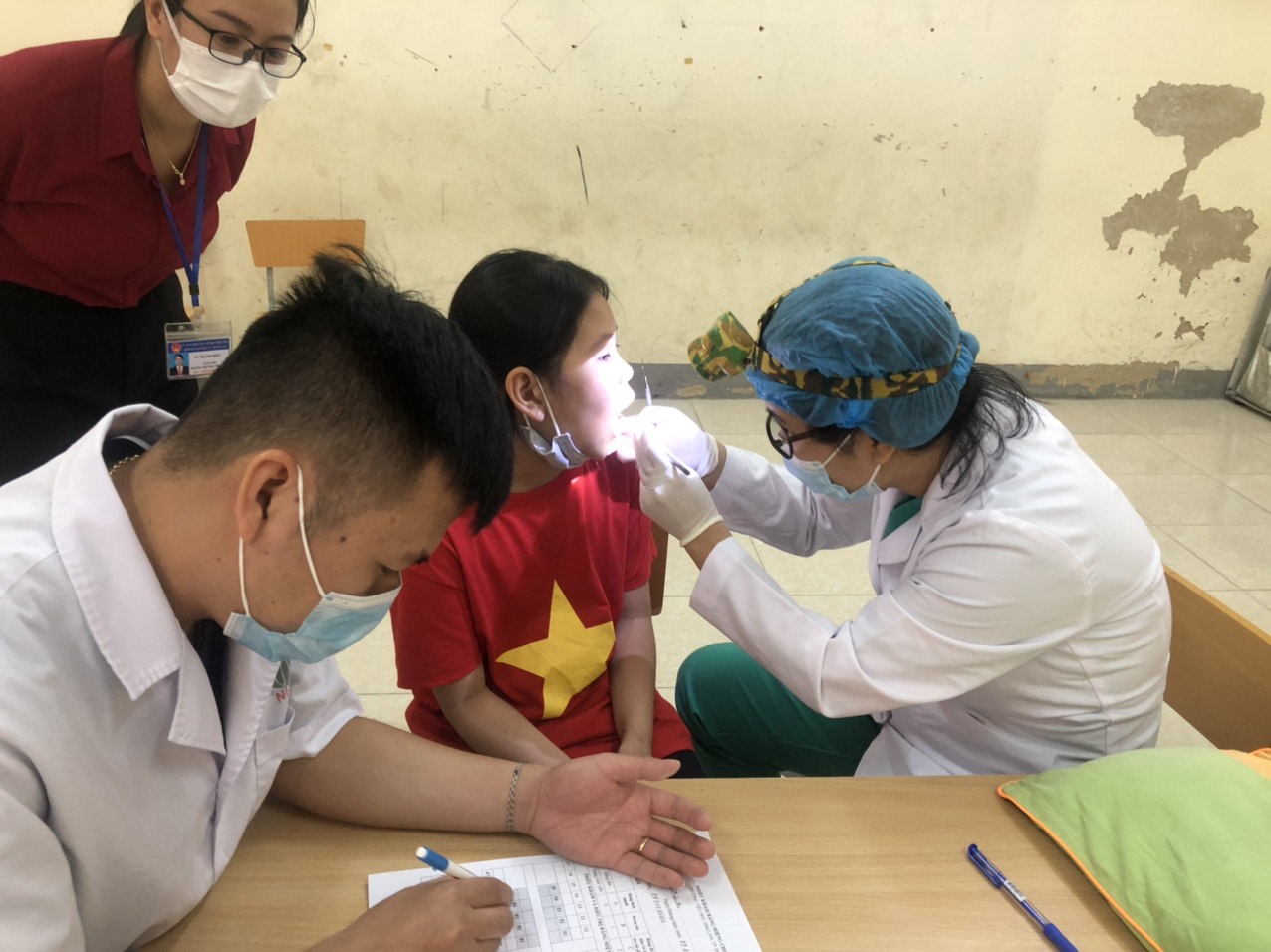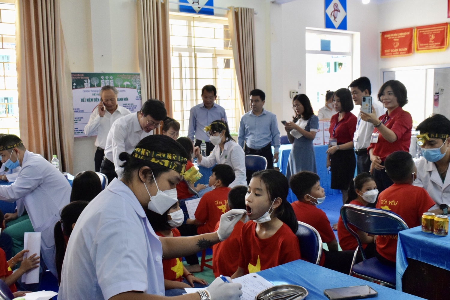 Về làm việc tại trường có Phó giáo sư - Tiến sĩ Nguyễn Quang Bình – Phó giám đốc Bệnh viện Răng Hàm Mặt Trung ương - Trưởng đoàn cùng các bác sĩ chuyên khoa của Bệnh viện Răng Hàm Mặt Trung ương. Đoàn đã khám, tư vấn cho 100% CBGVNV và HS nhà trường, điều trị tại chỗ cho HS bị một số bệnh về răng. Trong buổi sáng đoàn đã tổ chức tuyên truyền cho CBGVNV và HS về cách chăm sóc răng miệng. Với thông điệp “4 số 2” đó là: Một ngày đánh răng 2 lần, mỗi lần đánh răng trong 2 phút, hạn chế ăn sau 2 giờ, một năm khám răng định kì 2 lần đã giúp cho các em nhớ ngay nội dung tuyên truyền. Các bác sĩ còn hướng dẫn cho các em học sinh cách lựa chọn bàn chải đánh răng, kem đánh răng, cách đánh răng, cách dùng chỉ nha khoa, vệ sinh răng miệng.