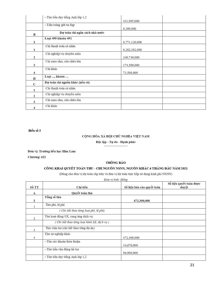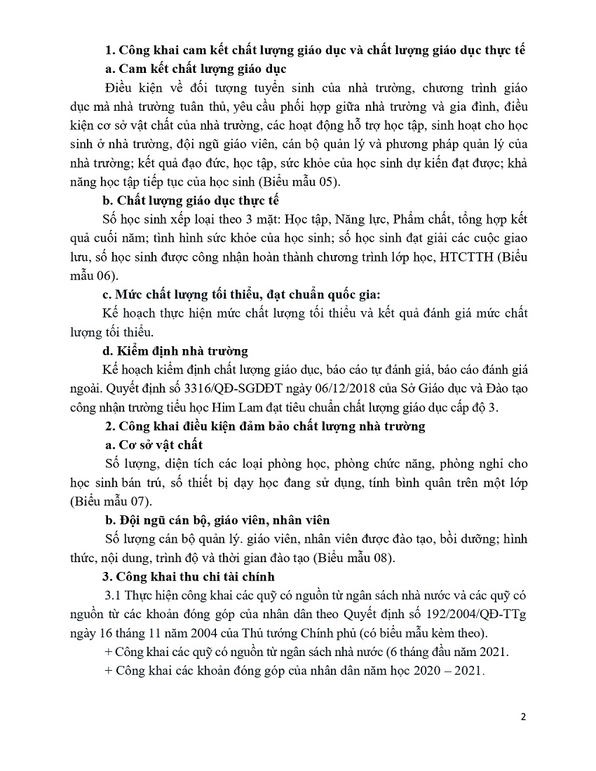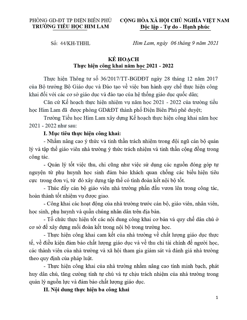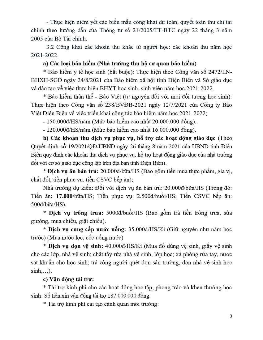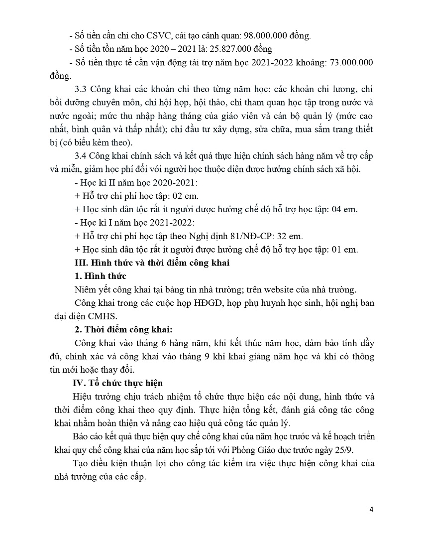 THỰC HIỆN CÔNG KHAI GIÁO DỤC NĂM HỌC 2021 - 2022