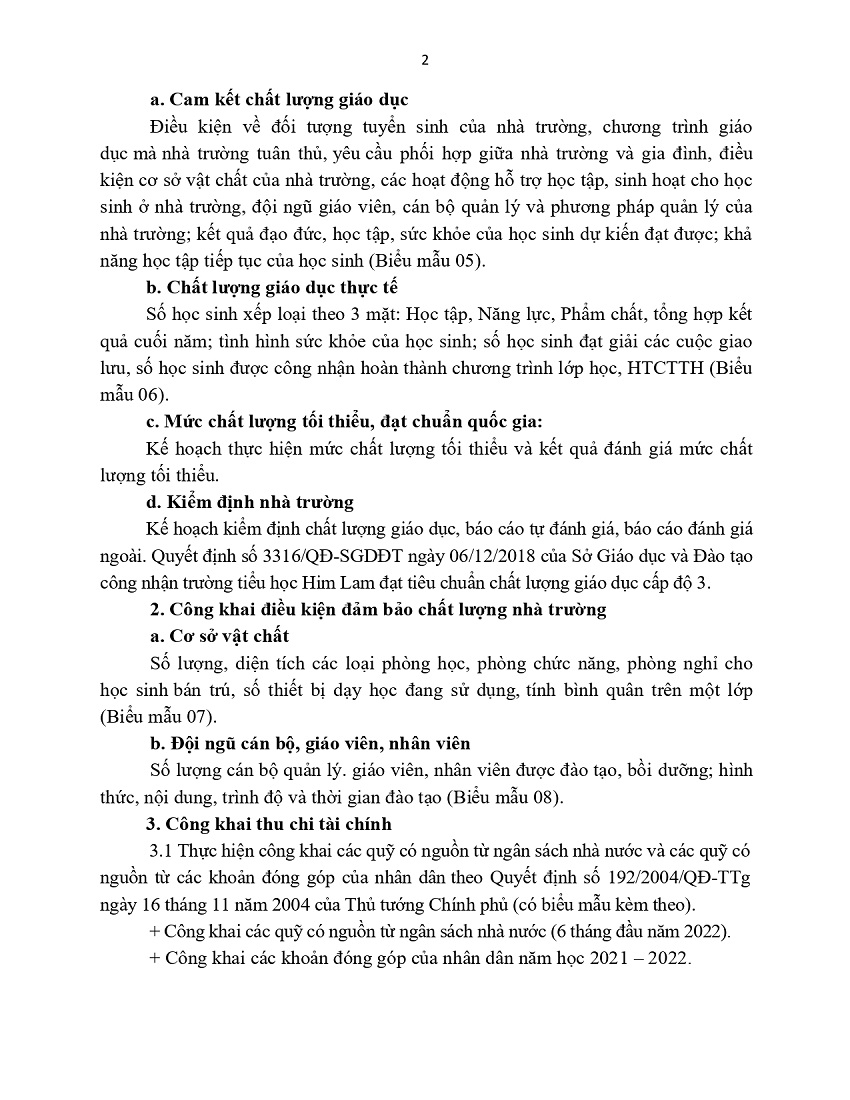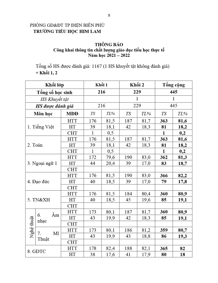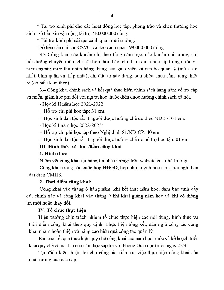 THỰC HIỆN CÔNG KHAI GIÁO DỤC NĂM HỌC 2022 - 2023