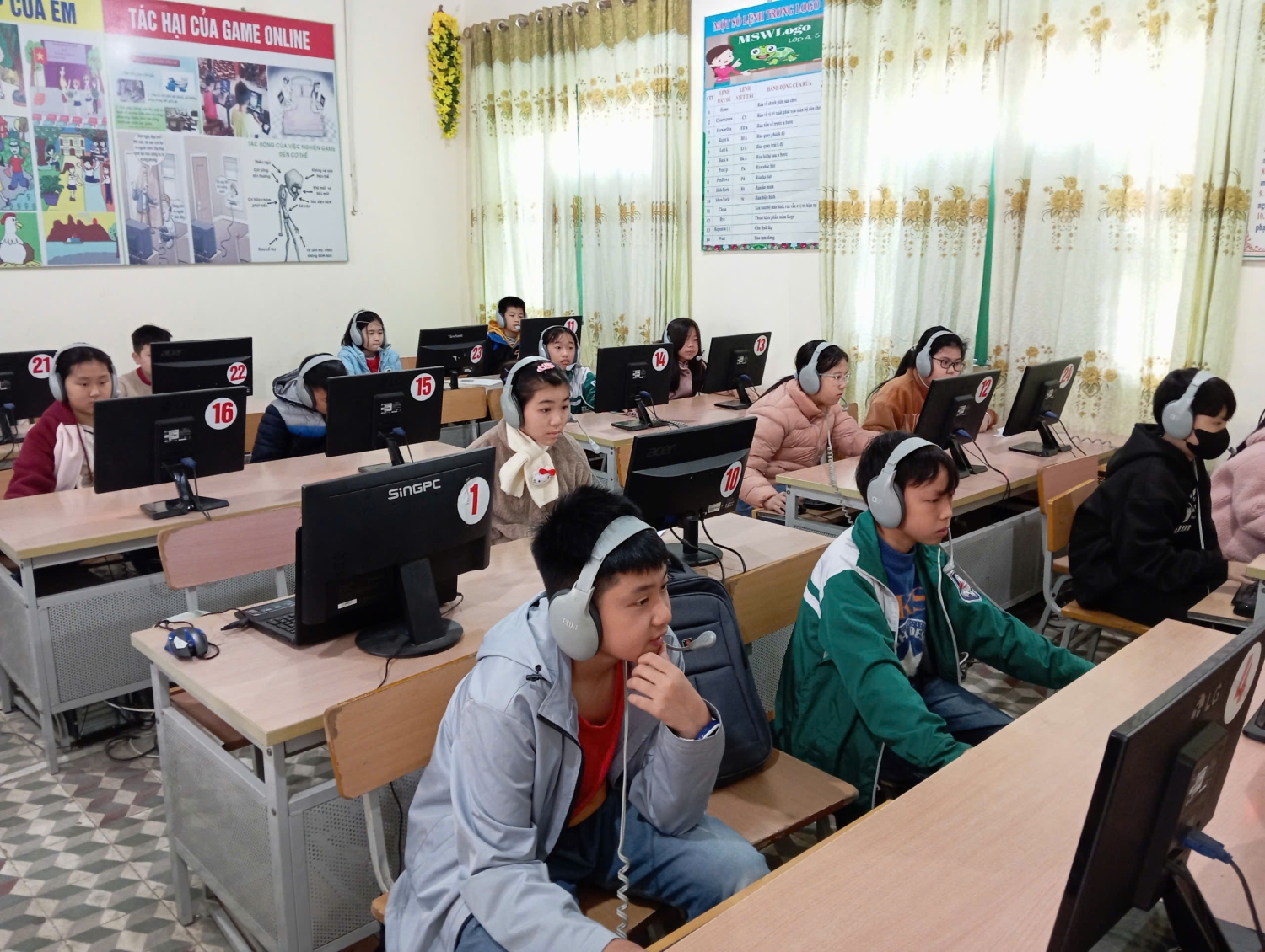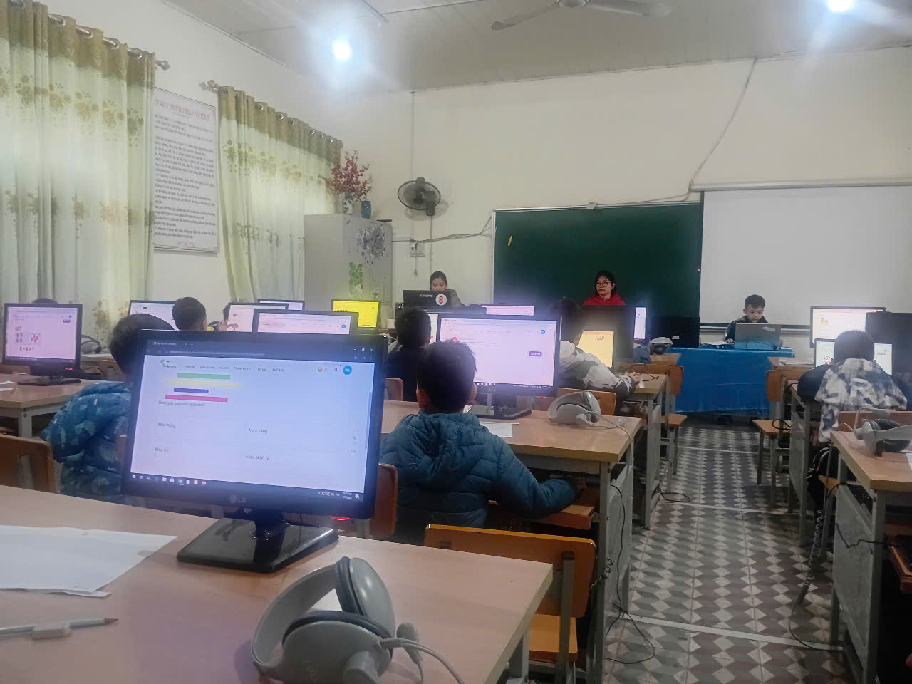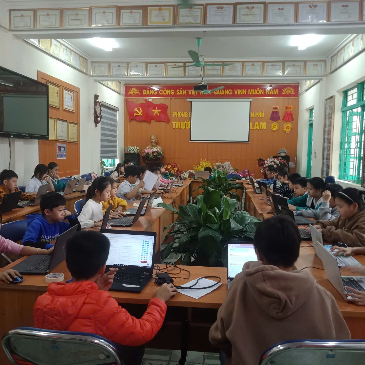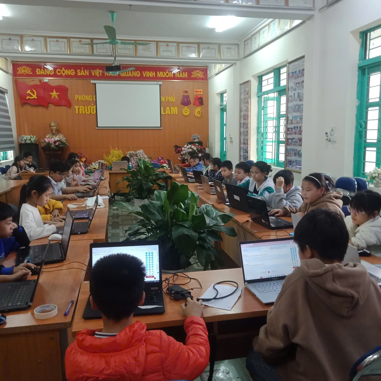 Để tổ chức tốt cuộc thi nhà trường đã chuẩn bị đầy đủ về cơ sở vật chất: phòng máy, hệ thống mạng, điện. Với số lượng học sinh tham dự thi khá lớn nên nhà trường đã huy động phụ huynh hỗ trợ thêm nhiều máy tính xách tay để đảm bảo đủ cho các em tham gia thi tại 02 phòng thi.