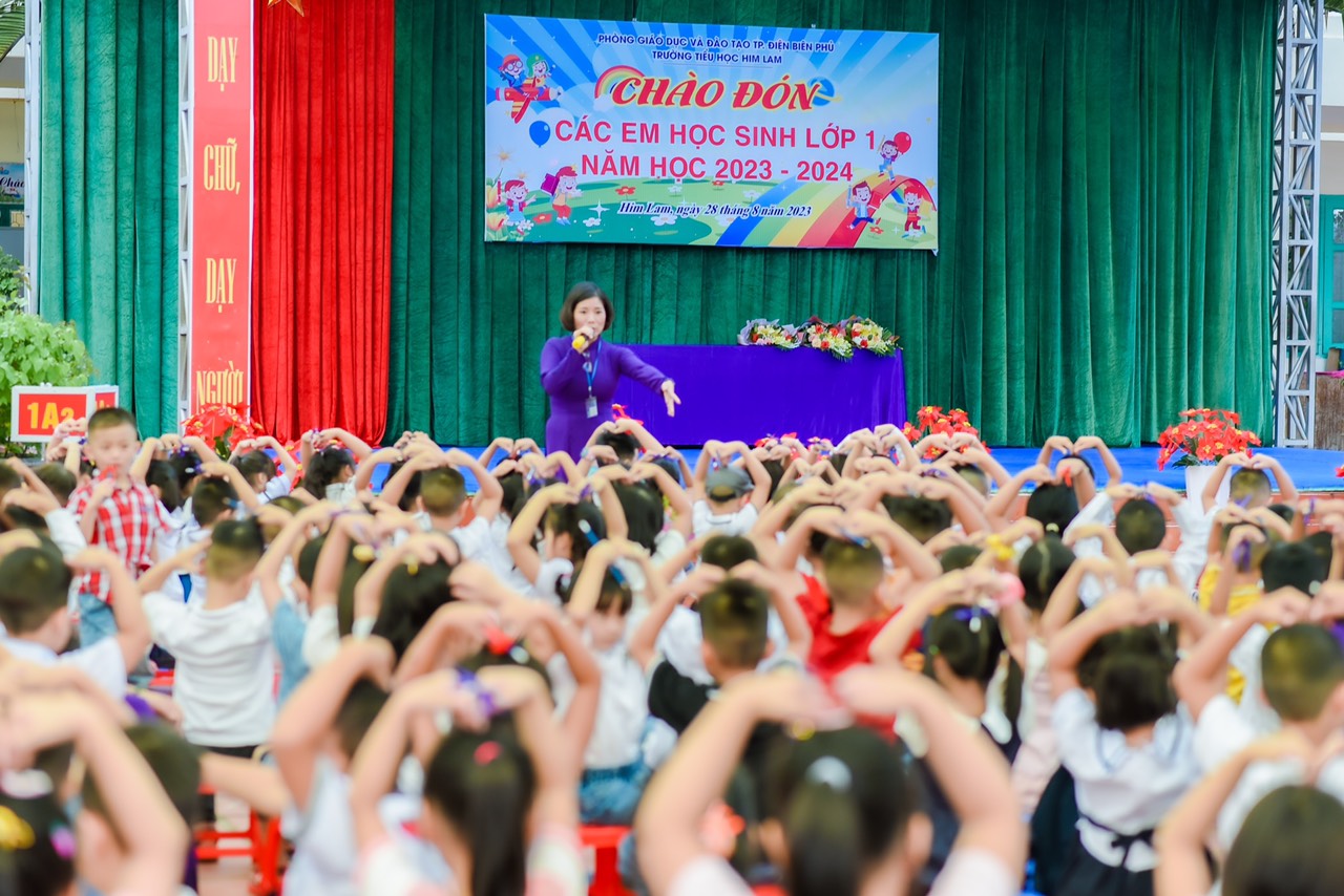 Thực hiện Quyết định số 1225/QĐ-UBND ngày 04 tháng 8 năm 2023 của UBND tỉnh Điện Biên về việc ban hành Kế hoạch thời gian năm học 2023 – 2024 đối với giáo dục mầm non, giáo dục phổ thông và giáo dục thường xuyên trên địa bàn tỉnh Điện Biên, sáng ngày 28/8/2023 trường TH Him Lam tổ chức đón học sinh lớp 1 vào năm học mới 2023-2024.