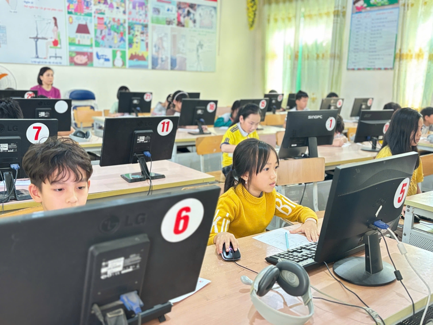 Đến với lần thử sức thứ tư trong mùa giải Violympic Toán năm học này có 173 thí sinh tham gia. Trong đó: khối 2: 58 em, khối 3: 51 em, khối 4: 36 em, khối 5: 28 em. Nhà trường đã chuẩn bị chu đáo các điều kiện về CSVC, thiết bị máy tính…để tạo điều kiện tốt nhất cho các em thể hiện, phát huy hết khả năng của mình. Với tâm lý hào hứng, tinh thần sẵn sàng chinh phục thử thách, với sự lỗ lực, quyết tâm và tập trung cao chỉ sau một khoảng thời gian ngắn các em đã nhanh chóng hoàn thành vòng thi của mình. Kết quả: Có 50/173 em đạt từ 200 điểm trở lên. Trong đó có 05 em đạt từ 250 điểm trở lên. Tiêu biểu như em: Trần Đức Minh lớp 2a5 và em Phạm Anh Đức lớp 5A4 đạt 270 điểm, các em Đặng Tiến Đạt lớp 2a6, Vũ Minh Thành lớp 2a4 và em Nguyễn Việt Anh lớp 5A2 đạt 250 điểm. Có rất nhiều em đạt 220, 230, 240 điểm đến từ tất cả các khối lớp. Thành công của cuộc thi không chỉ dừng lại ở kết quả mà còn là động lực để các em tiếp tục rèn luyện, phấn đấu và vươn xa hơn trên con đường học tập của mình. Đồng thời góp phần nâng cao chất lượng giáo dục môn Toán nói riêng và chất lượng giáo dục toàn diện trong nhà trường nói chung. Xin chúc mừng tất cả các em đã tham gia cuộc thi. Các thầy cô luôn đồng hành và tiếp sức cho các em trong các cuộc thi và trong suốt chặng đường học tập của các em. Hy vọng rằng, niềm đam mê Toán học sẽ giúp các em sẽ tiếp tục chinh phục những đỉnh cao mới trong tương lai. MỘT SỐ HÌNH ẢNH TRONG CUỘC THI