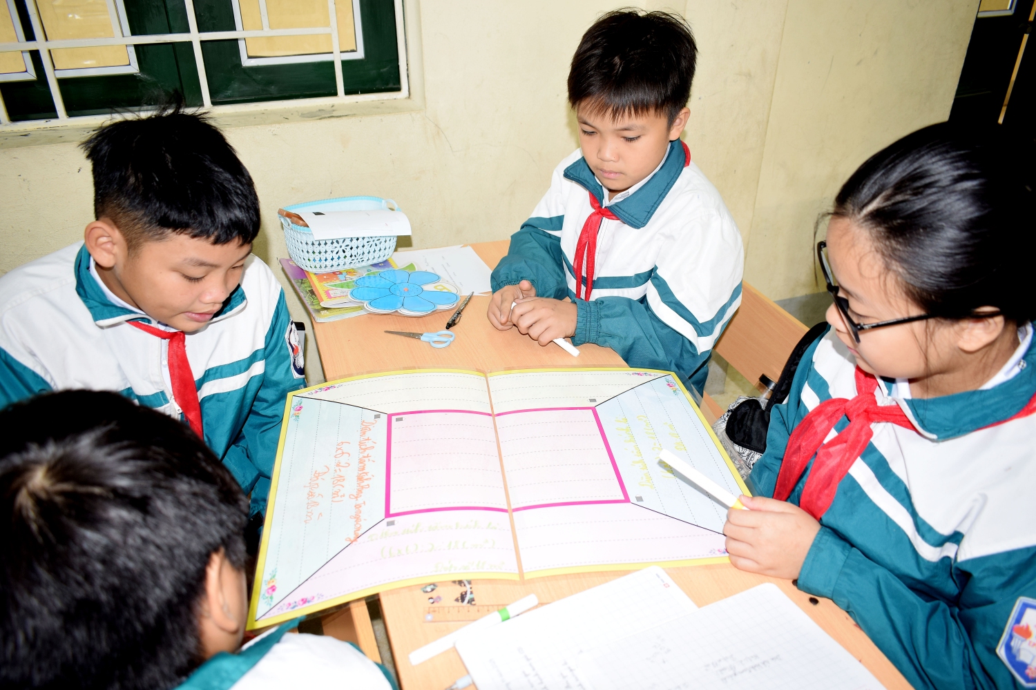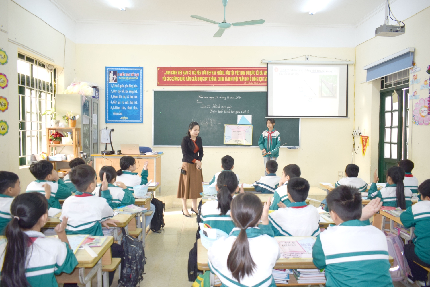 Học tập trải nghiệm sáng tạo: Quy tắc tính diện tích hình tam giác được truyền tải qua bài Vè vui nhộn, giúp học sinh dễ dàng ghi nhớ mà không bị nhàm chán.
