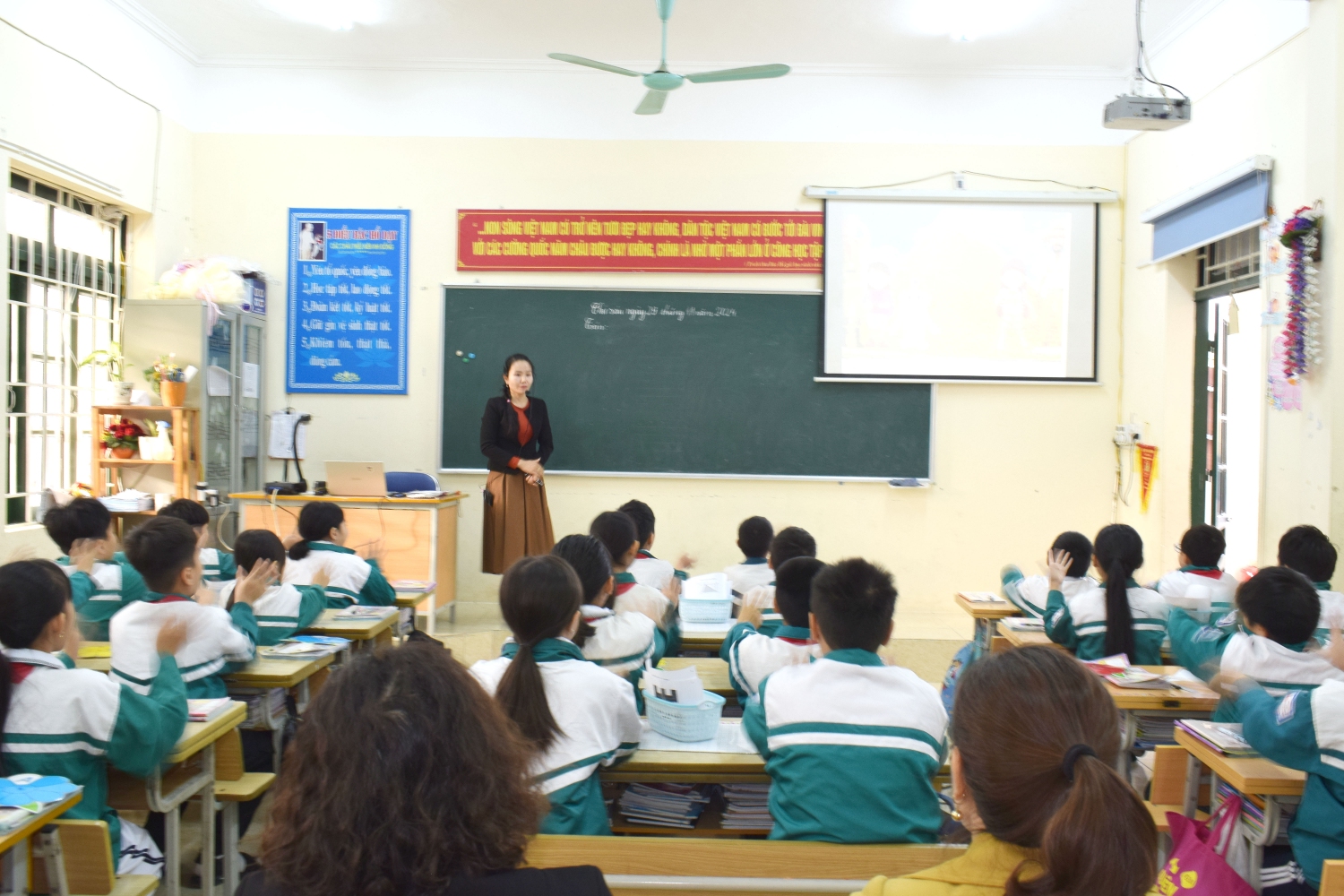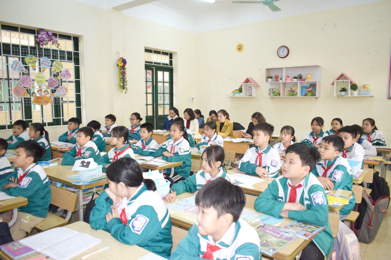 Tham dự tiết chuyên đề có các thầy, cô giáo trong Ban giám hiệu nhà trường và toàn thể giáo viên trong tổ chuyên môn khối 5.