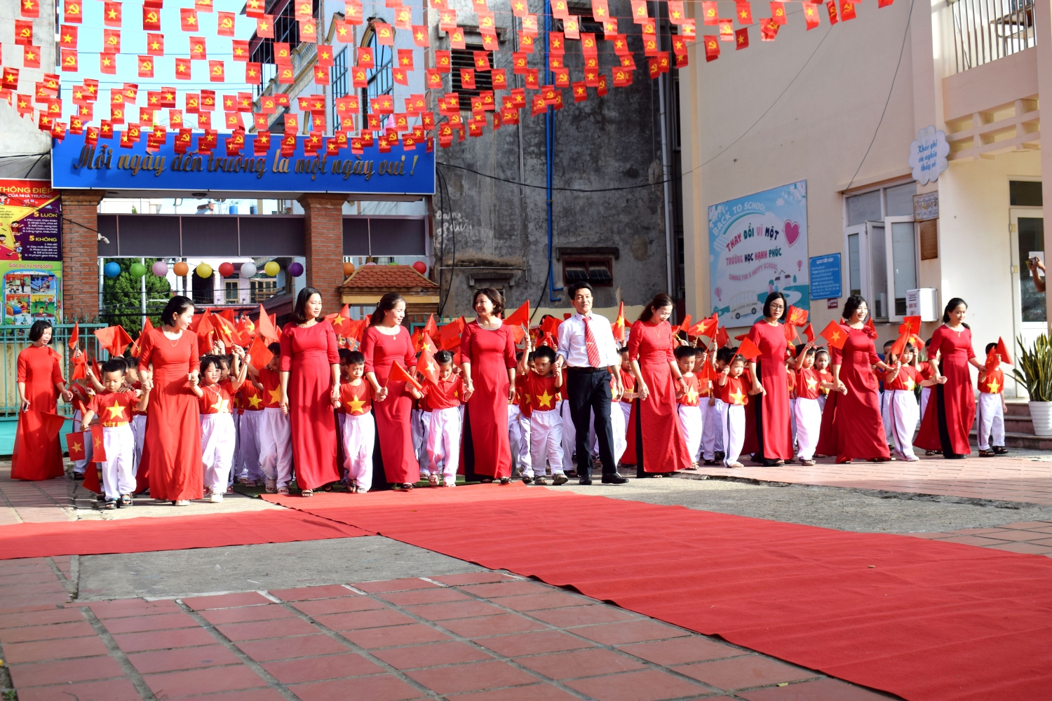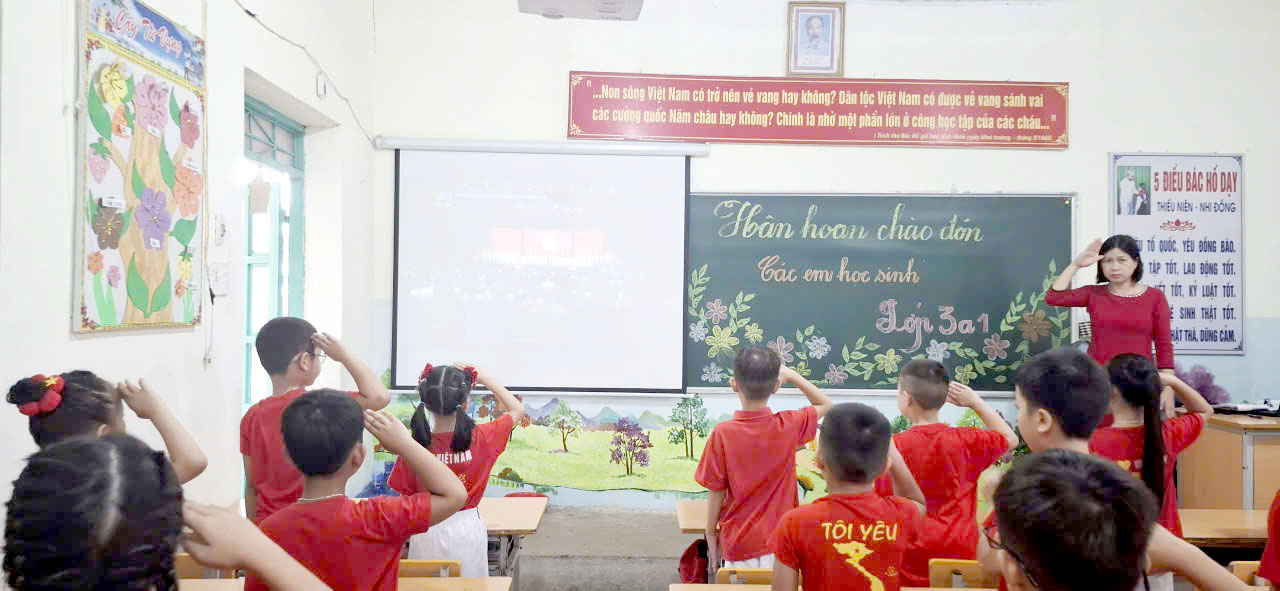 Bầu không khí thêm rộn ràng, khi chương trình văn nghệ chào mừng Lễ khai giảng bắt đầu. Các thầy cô giáo và các em học sinh trong đội Sơn ca nhà trường đã mang đến những giai điệu ca ngợi quê hương, đất nước, mái trường và thầy cô như tiếp thêm tinh thần phấn khởi, tự hào trong ngày hội toàn dân đưa trẻ đến trường.
