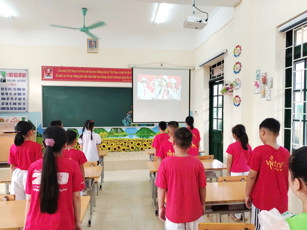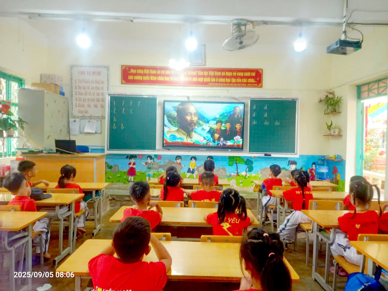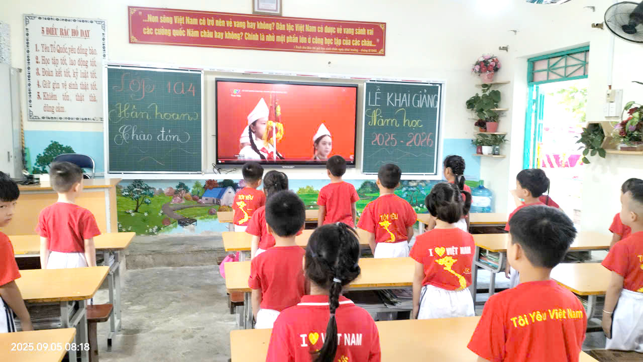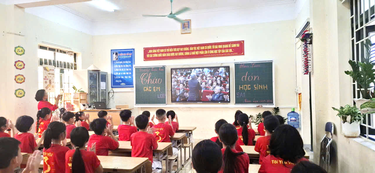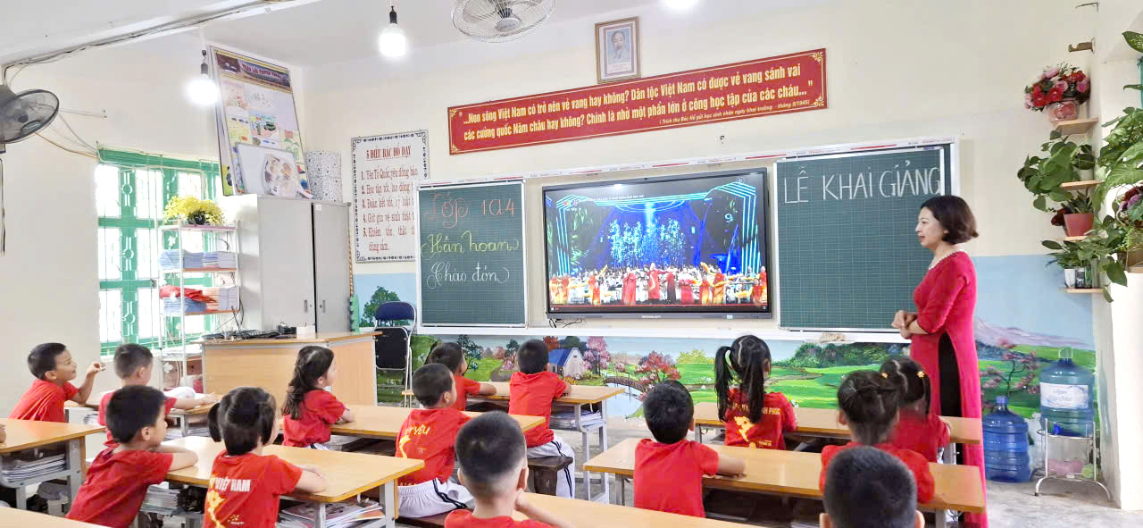 Sau chương trình văn nghệ, đúng 8 giờ, quý vị đại biểu, khách quý và toàn thể các thầy cô giáo và các em học sinh cùng tham dự trực tuyến Lễ khai giảng đặc biệt gắn với kỷ niệm 80 năm thành lập Bộ Quốc gia Giáo dục (Nay là Bộ Giáo dục và Đào tạo) do Bộ GD&ĐT tổ chức. Thầy trò nhà trường được thưởng thức chương trình văn nghệ đặc sắc, cùng hát vang bài Quốc ca hùng tráng với thầy trò các trường trên mọi miền của Tổ quốc, cùng nghe diễn văn của Bộ trưởng Bộ GD&ĐT Nguyễn Kim Sơn, xem phim tư liệu “80 năm Giáo dục phát triển đất nước”, nghe Tổng Bí Thư Tô Lâm phát biểu chỉ đạo và đánh trống khai trường. Buổi Lễ là dịp ôn lại truyền thống vẻ vang của ngành Giáo dục qua 80 năm xây dựng và phát triển, tôn vinh những đóng góp to lớn của các thế hệ nhà giáo, đồng thời khẳng định quyết tâm tiếp tục đổi mới, nâng cao chất lượng giáo dục trong giai đoạn mới. Thông qua sự kiện, mỗi thầy cô giáo trường Tiểu học Him Lam thêm tự hào về nghề, thêm động lực để cống hiến, góp phần xây dựng trường Tiểu học Him Lam ngày càng vững mạnh, đóng góp vào sự phát triển của sự nghiệp giáo dục địa phương và đất nước.
