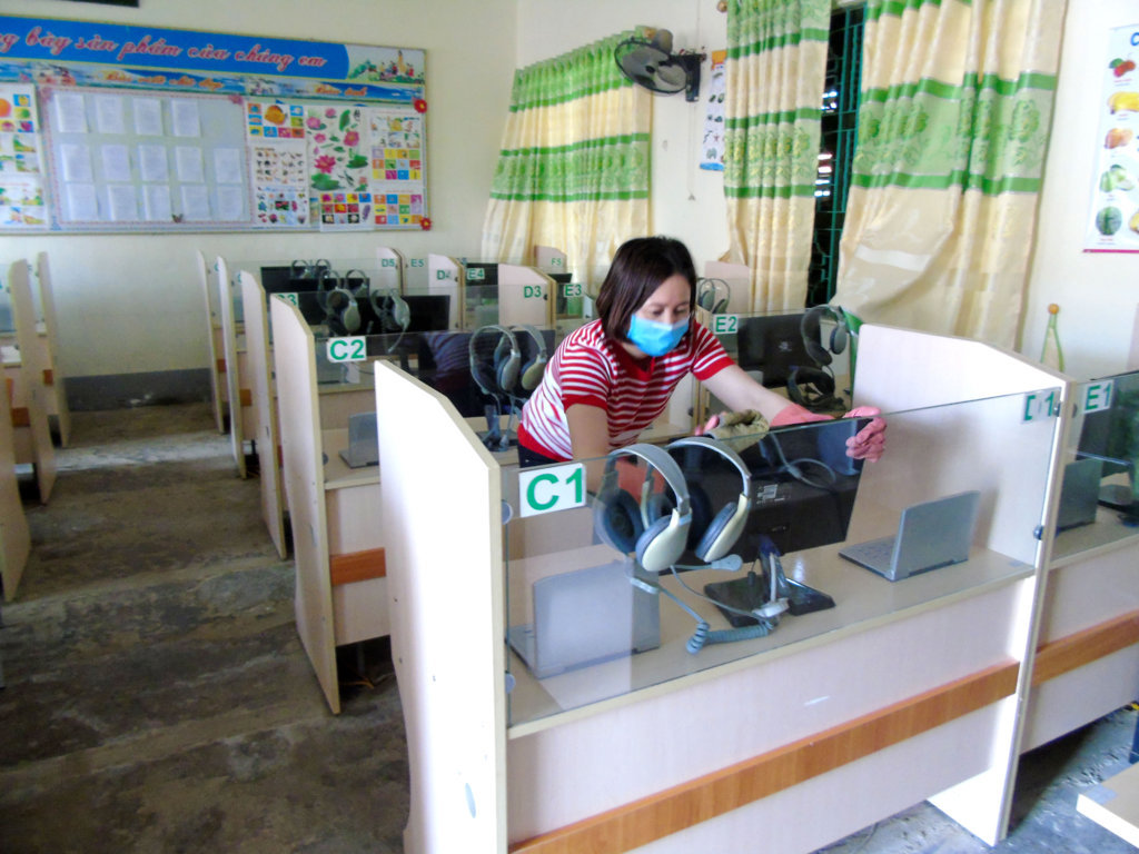 Trong thời gian học sinh nghỉ học, cán bộ giáo viên nhân viên đã tích cực tổng vệ sinh trường lớp, sử dụng chất sát khuẩn phun, tẩy rửa lớp học, bàn ghế, đồ dùng, thiết bị, đồ chơi,...để có một môi trường tốt nhất cho các em khi trở lại lớp học./.