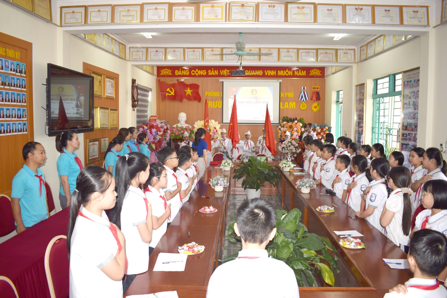 Đến dự và chỉ đạo Đại hội có: Cô giáo Nguyễn Thị Bích - Bí thư Chi bộ, Hiệu trưởng nhà trường, thầy giáo Hà Đình Phương - Phó Bí thư Chi bộ, Phó Hiệu trưởng, Cô giáo Trịnh Thị Thị Thu - Bí thư Chi đoàn trường, Cô giáo Nguyễn Thanh Thủy - Tổng phụ trách Đội, các thầy cô phụ trách các chi đội cùng toàn thể đội viên tiêu biểu đại diện cho chi đội, lớp nhi đồng trong Liên đội.