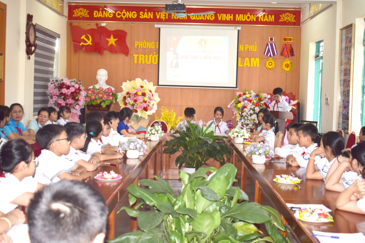 Tại Đại hội, thầy giáo Hà Đình Phương – Phó Bí thư Chi bộ, Phó Hiệu trưởng nhà trường đã phát biểu chỉ đạo, ghi nhận và biểu dương những kết quả mà Liên đội đã đạt được trong năm học vừa qua. Thầy đã nhấn mạnh vai trò quan trọng của công tác Đội trong việc giáo dục đạo đức, lối sống, kỹ năng cho học sinh; đồng thời động viên các em đội viên tiếp tục nỗ lực học tập, rèn luyện, phát huy tinh thần sáng tạo, đoàn kết để hoàn thành tốt các chỉ tiêu, nhiệm vụ mà Đại hội đã đề ra.