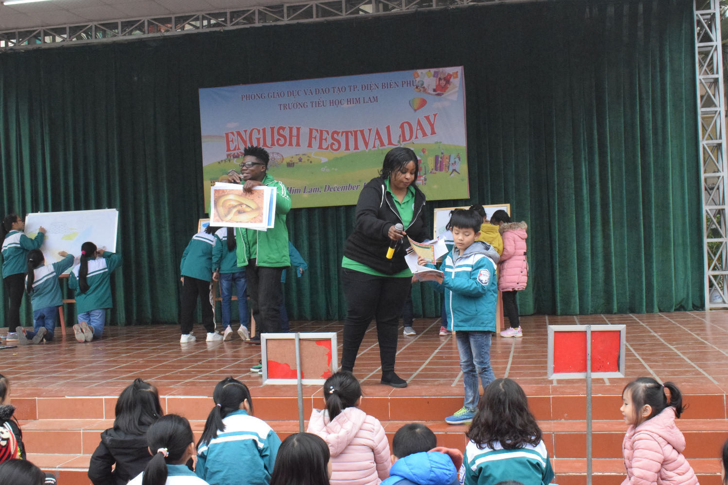 Để đông đảo học sinh toàn trường được tham gia, thể hiện khả năng tiếng Anh của mình, trong thời gian các đội vẽ tranh ban tổ chức đã thực hiện phần giao lưu khán giả: các em học sinh trong toàn trường được giải các câu đố vui, đoán tên các con vật, hát múa bài hát tiếng Anh; giao tiếp với thầy cô giáo người nước ngoài. Rất nhiều các bạn học sinh đã nhận được phần quà ý nghĩa của chương trình. Qua phần giao lưu này giúp các em học sinh có kĩ năng nghe, nói tiếng Anh tốt hơn và rèn kĩ năng giao tiếp mạnh dạn, tự tin.