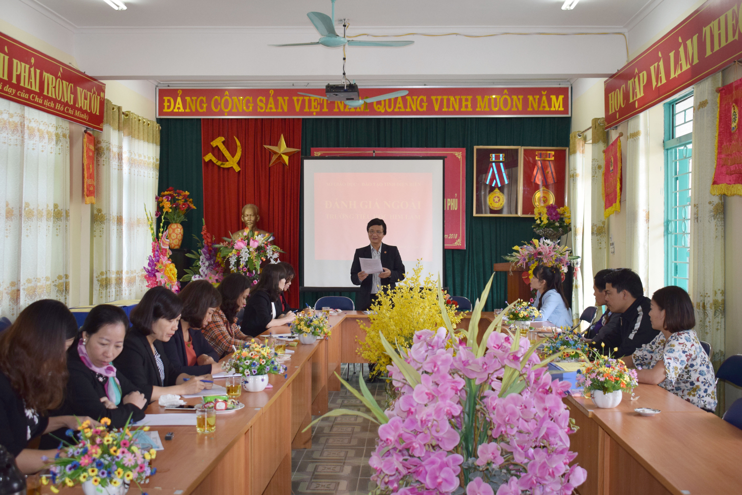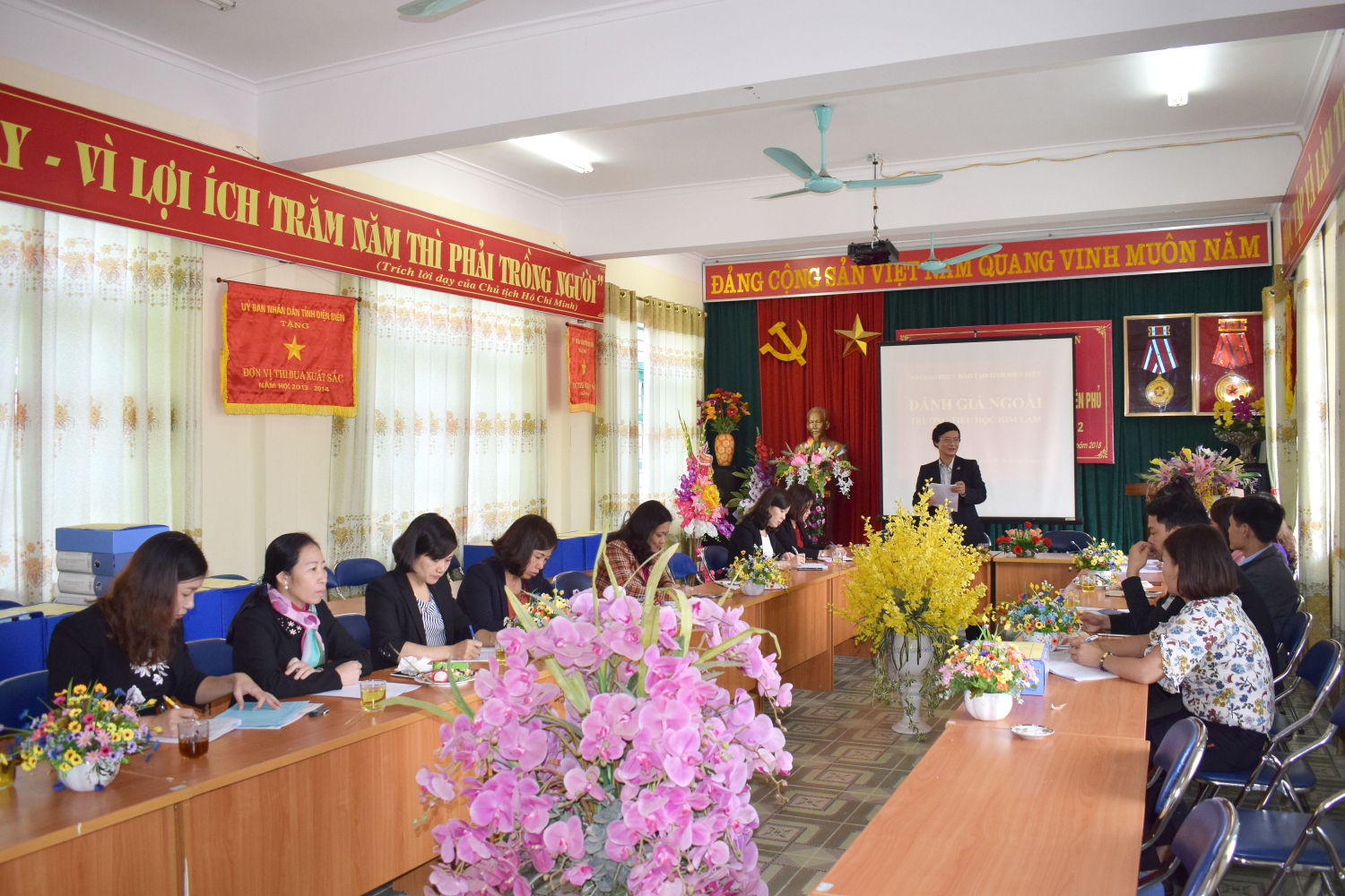 Ngày 05, 06/11/2018 trường Tiểu học Him Lam - Thành phố Điện Biên Phủ đón đoàn đánh giá ngoài của Sở Giáo dục và Đào tạo do đồng chí Đào Thái Lai - Trưởng phòng Tiểu học Sở Giáo dục và Đào tạo làm trưởng đoàn cùng các thành viên trong đoàn về khảo sát chính thức tại nhà trường và kiểm tra công nhận thư viện đạt chuẩn theo quy định của Bộ Giáo dục và Đào tạo.