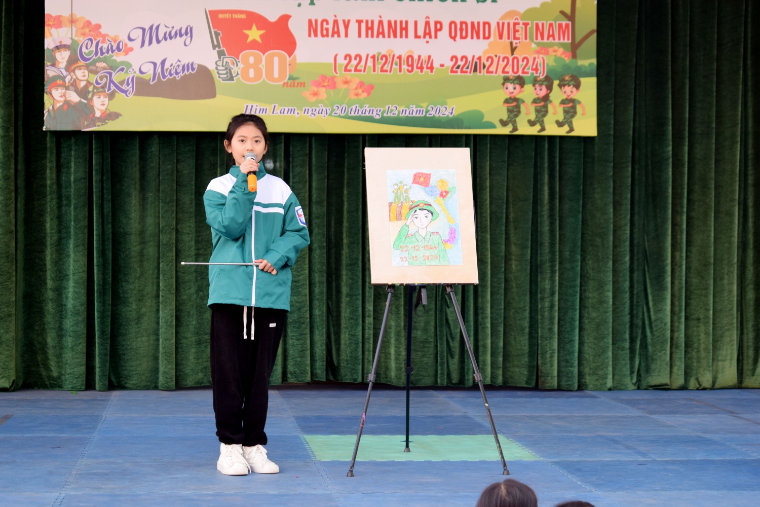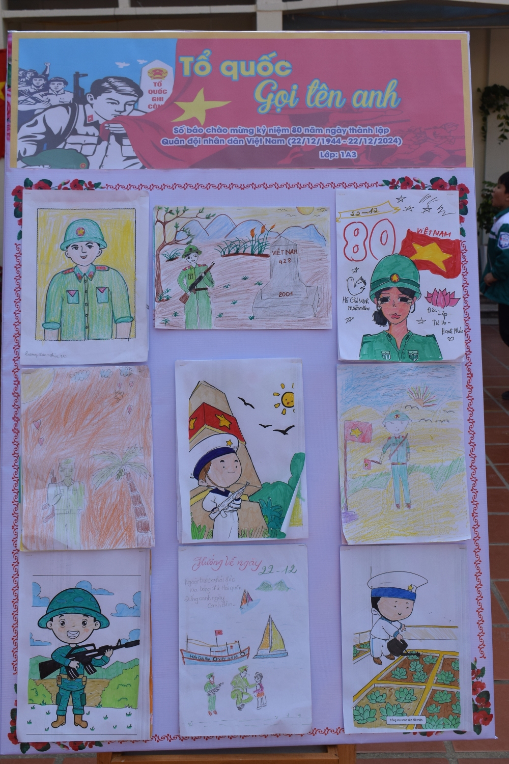 Ngay từ đầu tháng 12, Liên đội nhà trường đã phát động cuộc thi vẽ tranh và viết thư tri ân đến lực lượng Quân đội Nhân dân Việt Nam nhân kỉ niệm 80 năm ngày thành lập Quân đội nhân dân Việt Nam với chủ đề “Anh Bộ đội Cụ Hồ”. Cuộc thi thu hút đông đảo các em học sinh các khối lớp, gần như 100% các em tham gia. Quan sát các bức tranh với các nét vẽ mộc mạc, những trang thư với dòng chữ nắn nót, đều tăm tắp có thể cảm nhận được những tình cảm chân thành, giản dị nhưng vô cùng sâu lắng của các em.