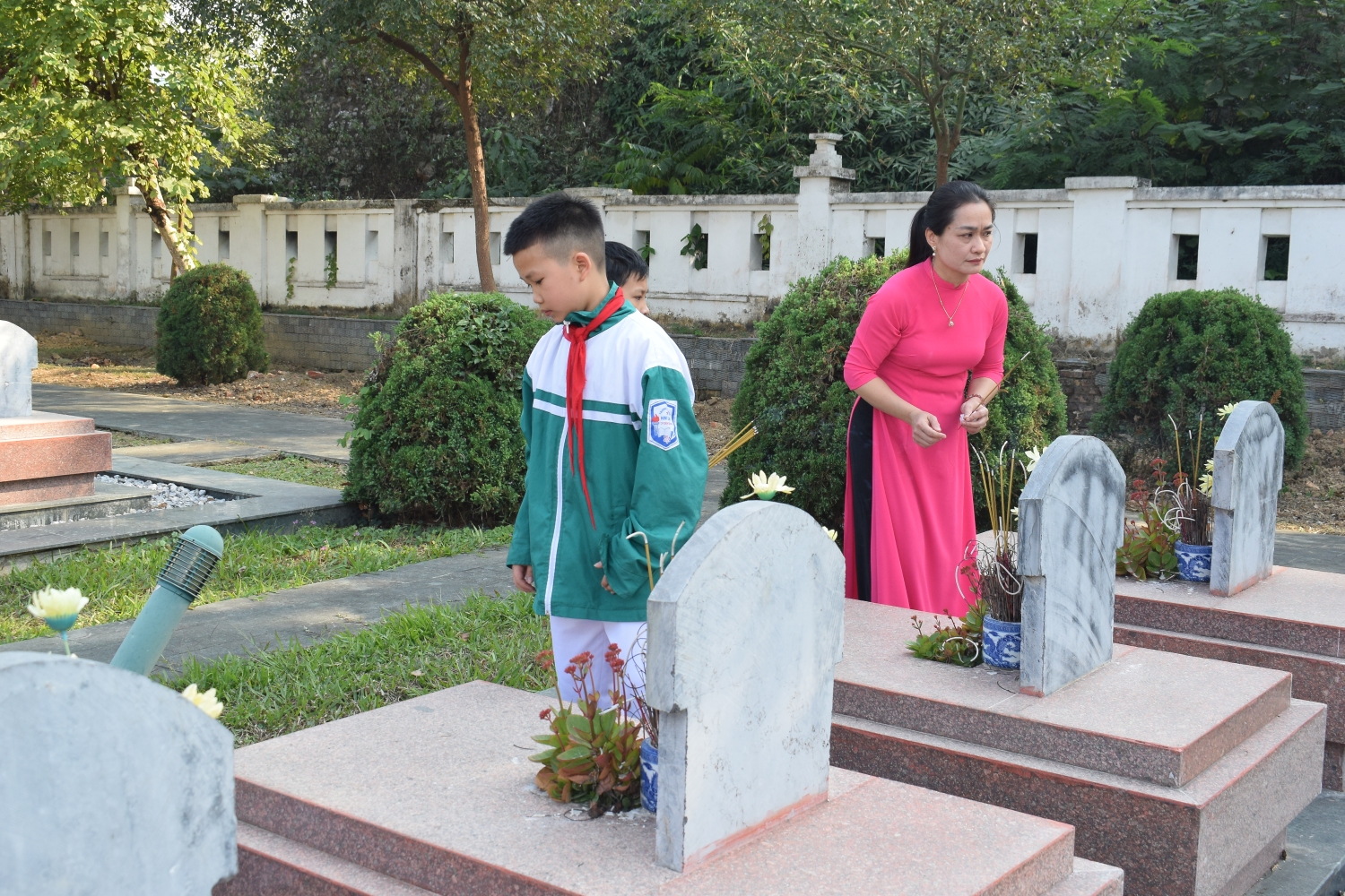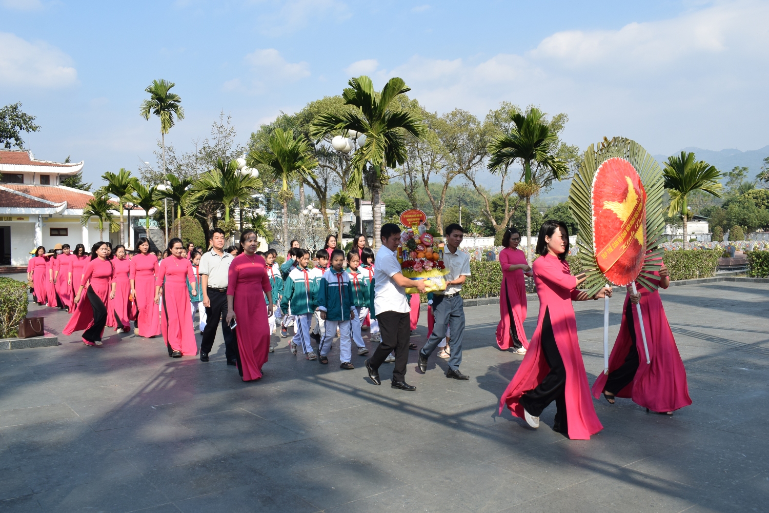 Chiều cùng ngày, thầy và trò nhà trường tổ chức dâng hương tưởng niệm các Liệt sỹ tại nghĩa trang Liệt sỹ Him Lam. Buổi dâng hương tưởng niệm các Liệt sỹ nhắc nhở các em học sinh luôn khắc ghi công ơn to lớn của các anh hùng, liệt sỹ đã ngã xuống vì độc lập, tự do của Tổ quốc.