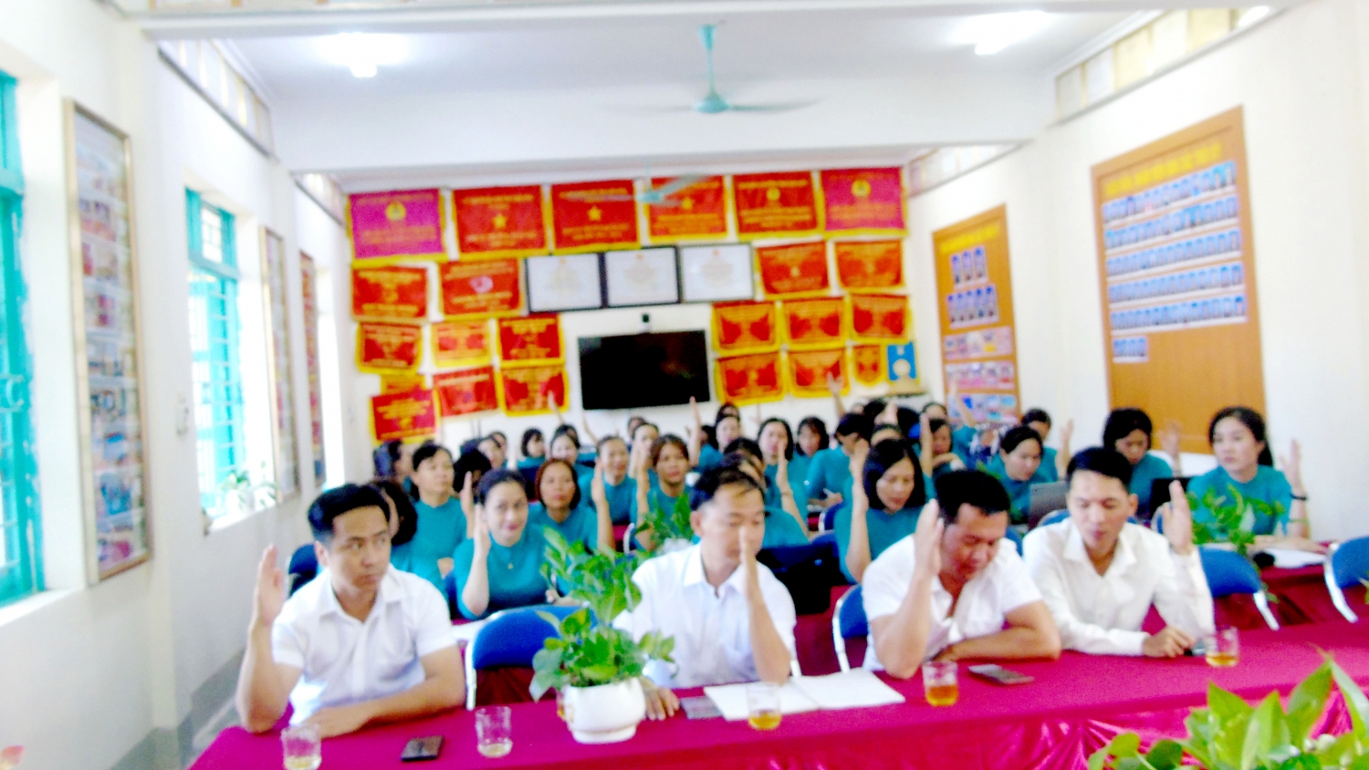 Hội nghị cán bộ, viên chức là dịp quan trọng để các đồng chí cán bộ, giáo viên, nhân viên trong nhà trường được nói lên tiếng nói, suy nghĩ, nguyện vọng của bản thân cũng như của tổ chuyên môn; tham gia đóng góp ý kiến cho báo cáo thực hiện nghị quyết Hội nghị CB-VC năm học 2023-2024 và phương hướng, kế hoạch và biện pháp thực hiện nhiệm vụ năm học 2023-2024