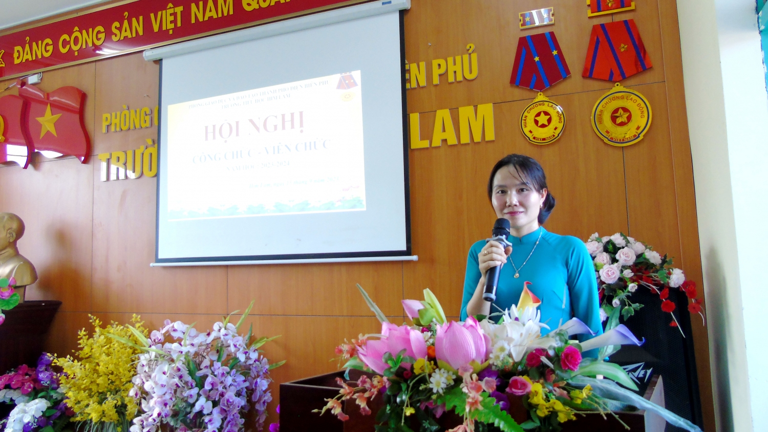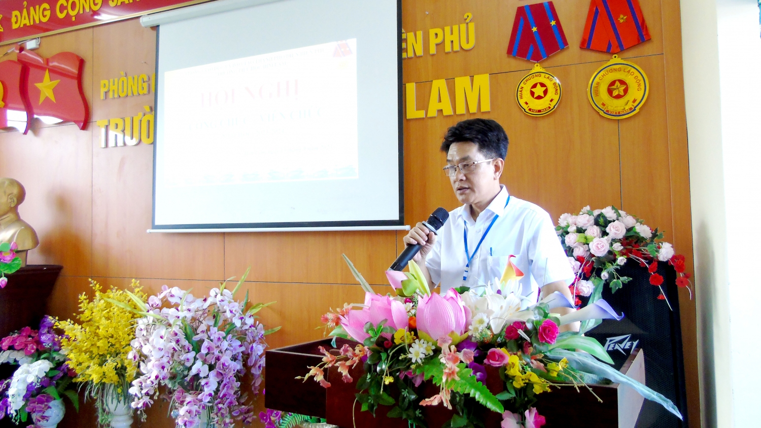 Hòa chung trong niềm vui hân hoan đón chào năm học mới, đồng thời thể hiện quyết tâm thực hiện tốt nhiệm vụ của năm học 2023 - 2024 với chủ đề: “Đoàn kết, kỉ cương, sáng tạo, tiếp tục đổi mới, nâng cao chất lượng giáo dục và đào tạo”, hôm nay, ngày 15/9/2023, trường Tiểu học Him Lam, thành phố Điện Biên Phủ long trọng tổ chức Hội nghị cán bộ viên chức năm học 2023-2024.