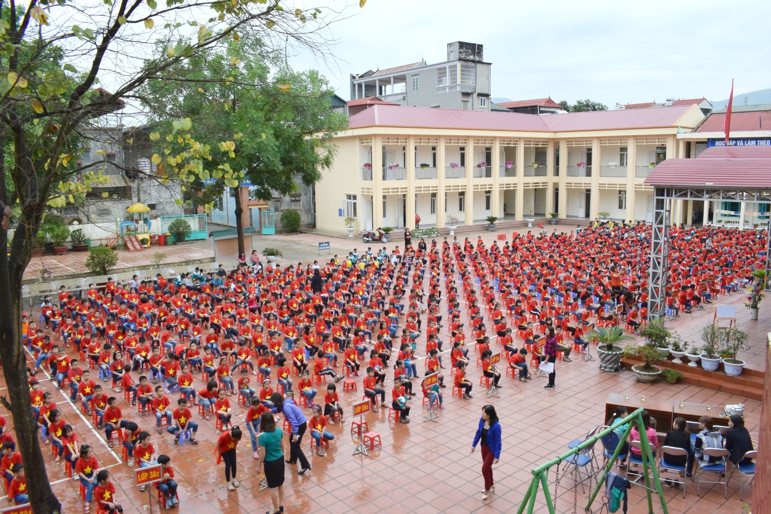 Tham dự buổi ngoại khóa có Ban giám hiệu cùng tất cả các thầy cô giáo và 948 em học sinh của nhà trường.