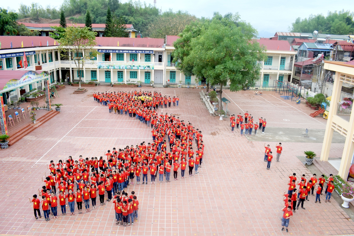 Và cuối cùng là màn xếp hình đất nước Việt Nam đầy ấn tượng đã khơi dậy ở các em học sinh tình yêu quê hương đất nước và với quyết tâm giữ gìn, bảo vệ toàn vẹn lãnh thổ, chủ quyền đất nước.