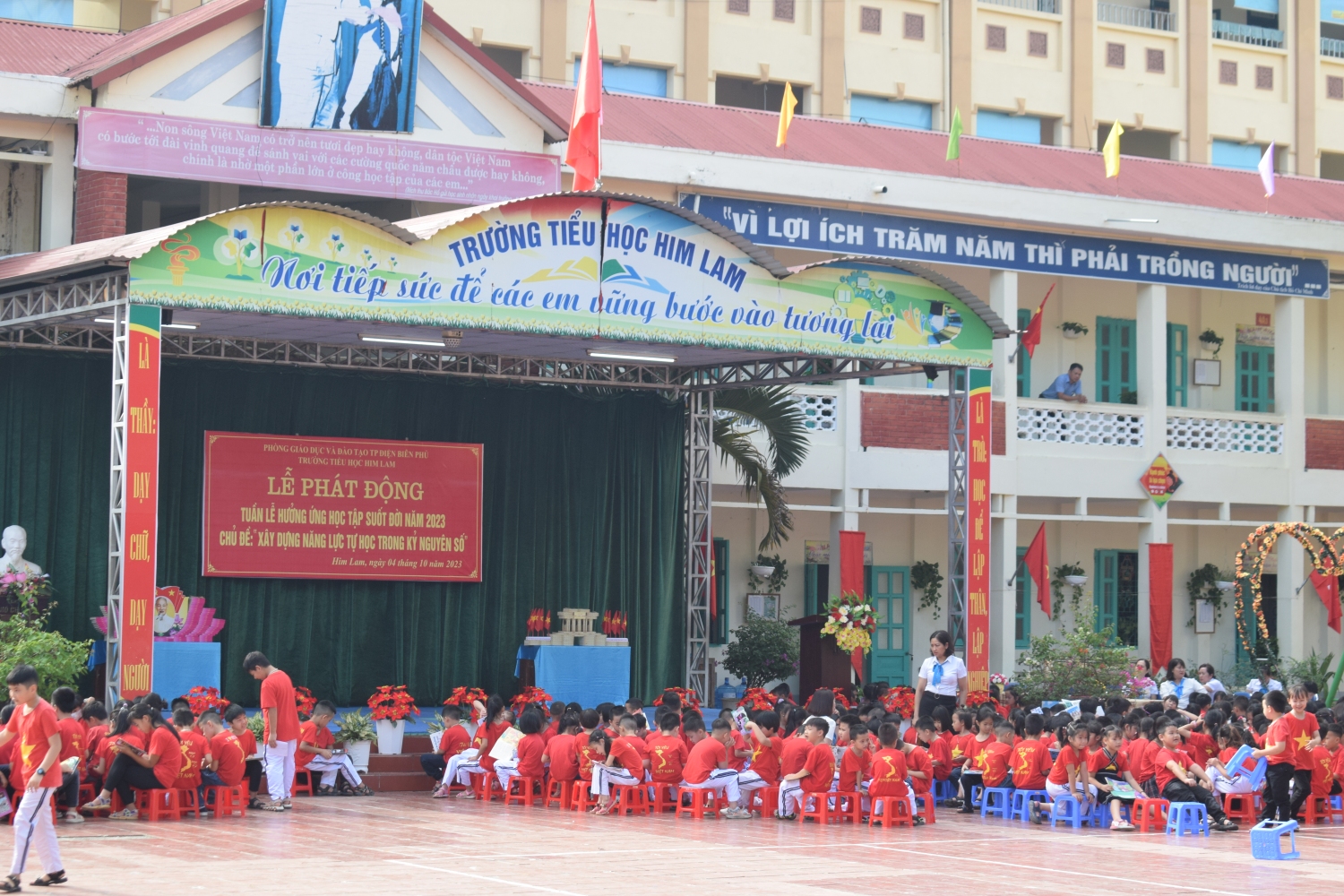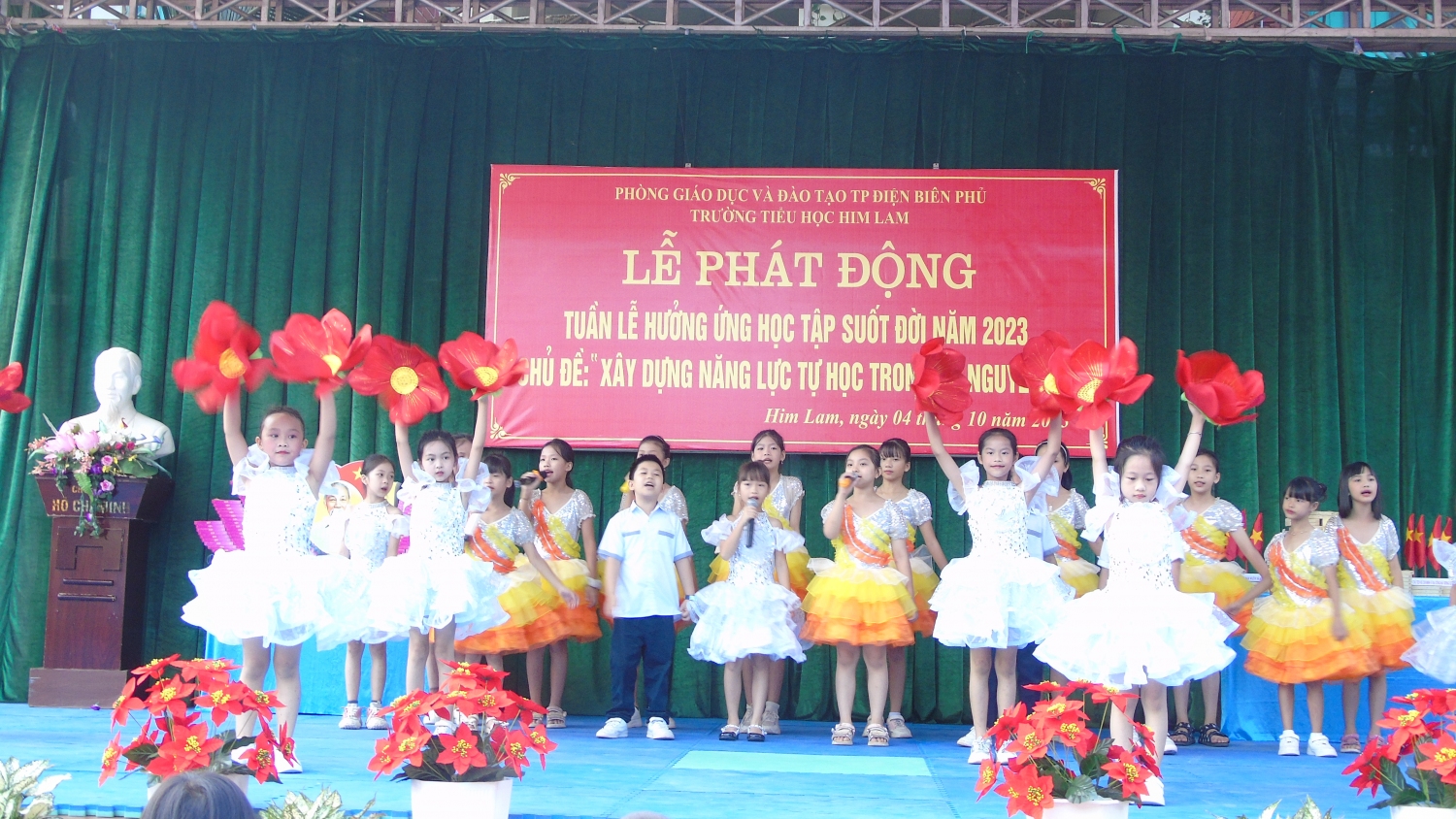 Tuần lễ hưởng ứng học tập suốt đời năm 2023”, sáng ngày 04/10/2023, trường Tiểu học Him Lam phối hợp với Thư viện tỉnh Điện Biên tổ chức Lễ phát động Tuần lễ hưởng ứng học tập suốt đời năm 2023 với chủ đề: