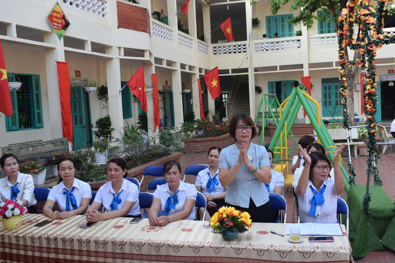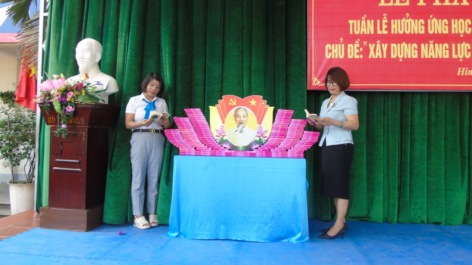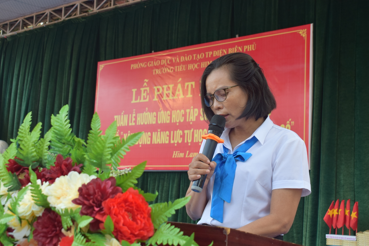 Về dự Lễ khai mạc có Đồng chí Nguyễn Thị Lan – Phó Chủ tịch UBND phường Him Lam, đ/c Phạm Đình Tuân – Phó trưởng phòng nghiệp vụ Thư viện tỉnh Điện Biên, các đồng chí trong BGH, các bậc phụ huynh, các thầy giáo, cô giáo cùng 1080 em học sinh nhà trường.