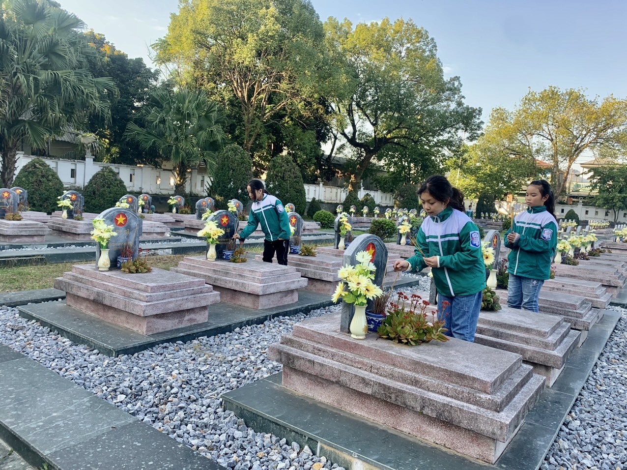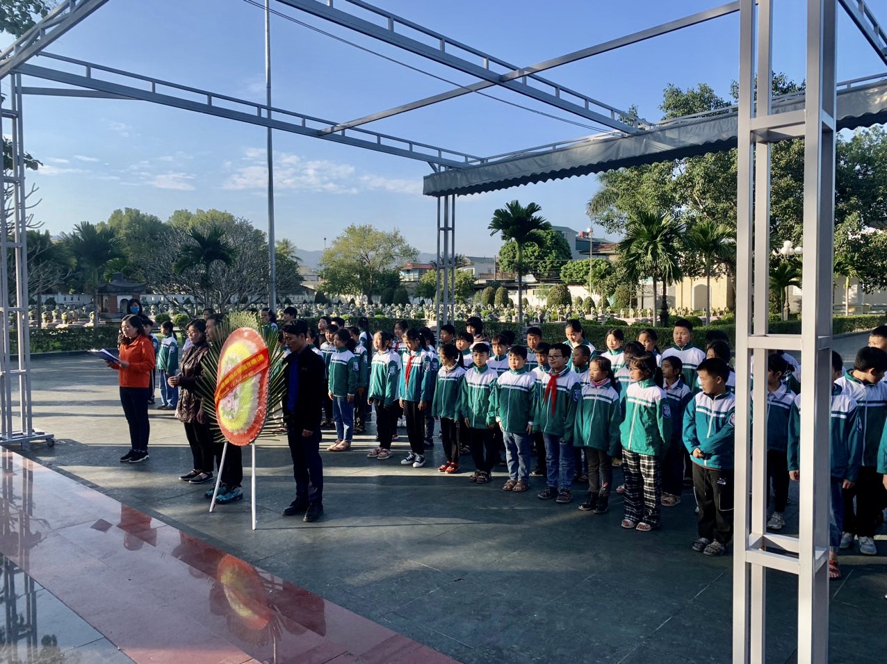 Để tưởng nhớ đến các anh hùng liệt sĩ đã hy sinh cả cuộc đời cho Tổ quốc, cho quê hương, các thầy cô giáo và các em học sinh nhà trường đã tổ chức dâng hương tưởng niệm các anh hùng liệt sỹ tại Nghĩa trang liệt sỹ Him Lam. Trong không khí trang nghiêm, thành kính, thầy cô giáo và các em học sinh đã bày tỏ lòng biết ơn vô hạn đối với các anh hùng liệt sĩ đã anh dũng hy sinh, cống hiến trọn đời mình cho sự nghiệp cách mạng vẻ vang của dân tộc, vì hòa bình, thống nhất Tổ quốc, vì cuộc sống bình yên và hạnh phúc của nhân dân.