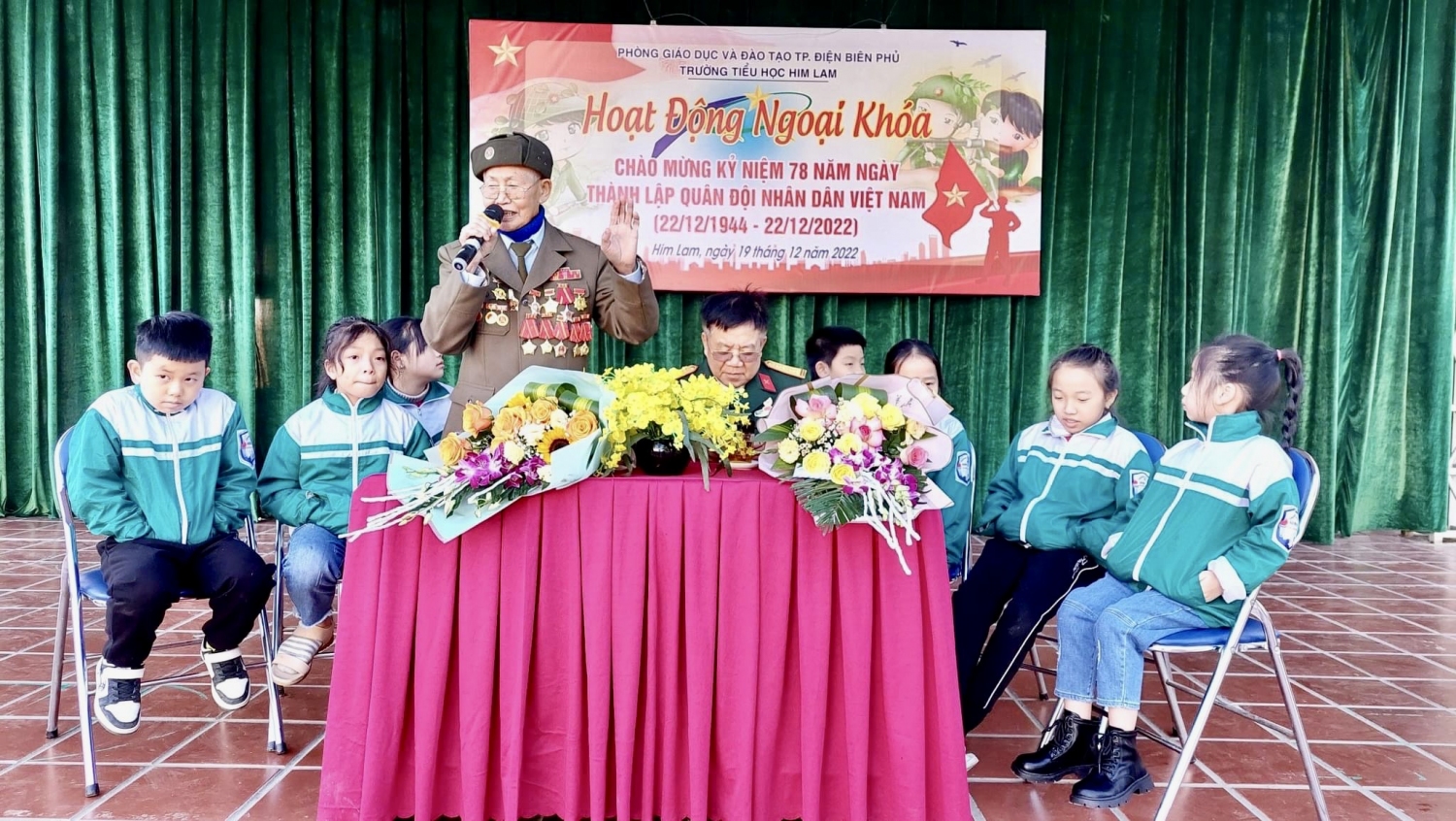 Ngày 19/12/2022, trường Tiểu học Him Lam phối hợp với Hội Cựu Chiến binh thành phố tổ chức nói chuyện về Chiến dịch Điện Biên Phủ và truyền thống Quân đội nhân dân Việt Nam cho học sinh nhằm giáo dục truyền thống yêu nước, lòng tự hào dân tộc, truyền thống đấu tranh của quân và dân ta, đồng thời khẳng định truyền thống vẻ vang, sự lớn mạnh của Quân đội Nhân dân Việt Nam trong 78 năm qua dưới sự lãnh đạo của Đảng.