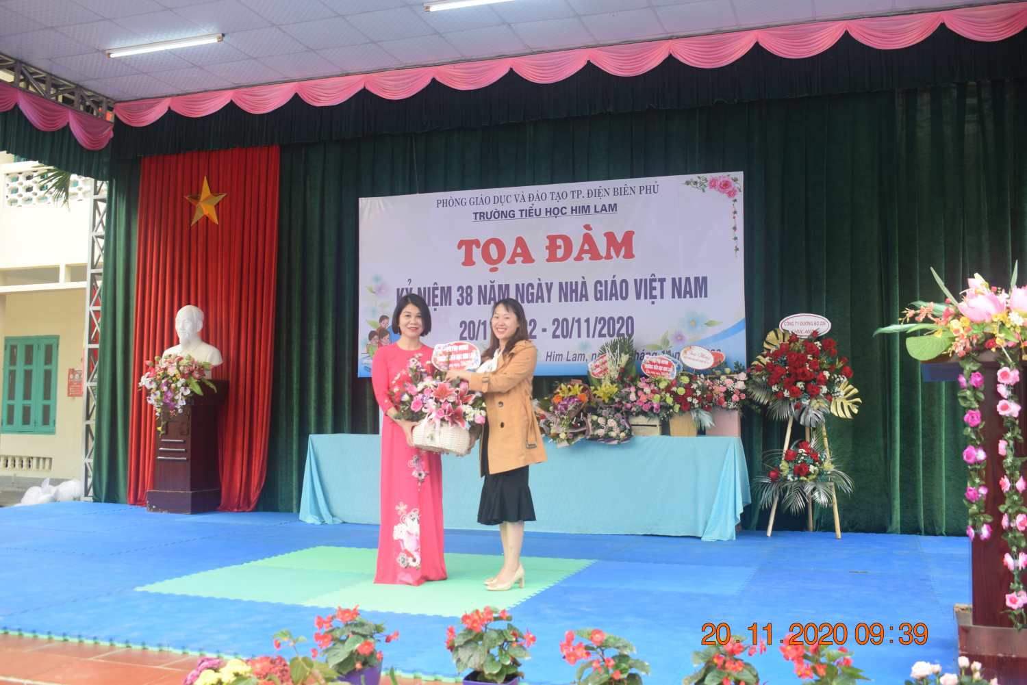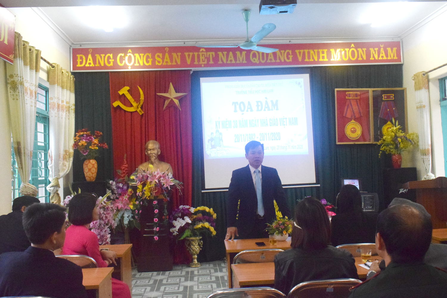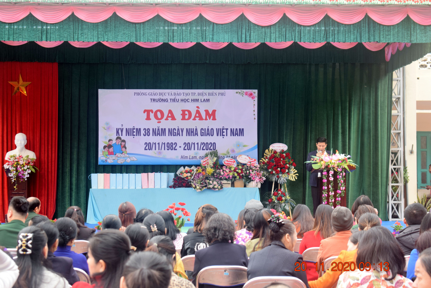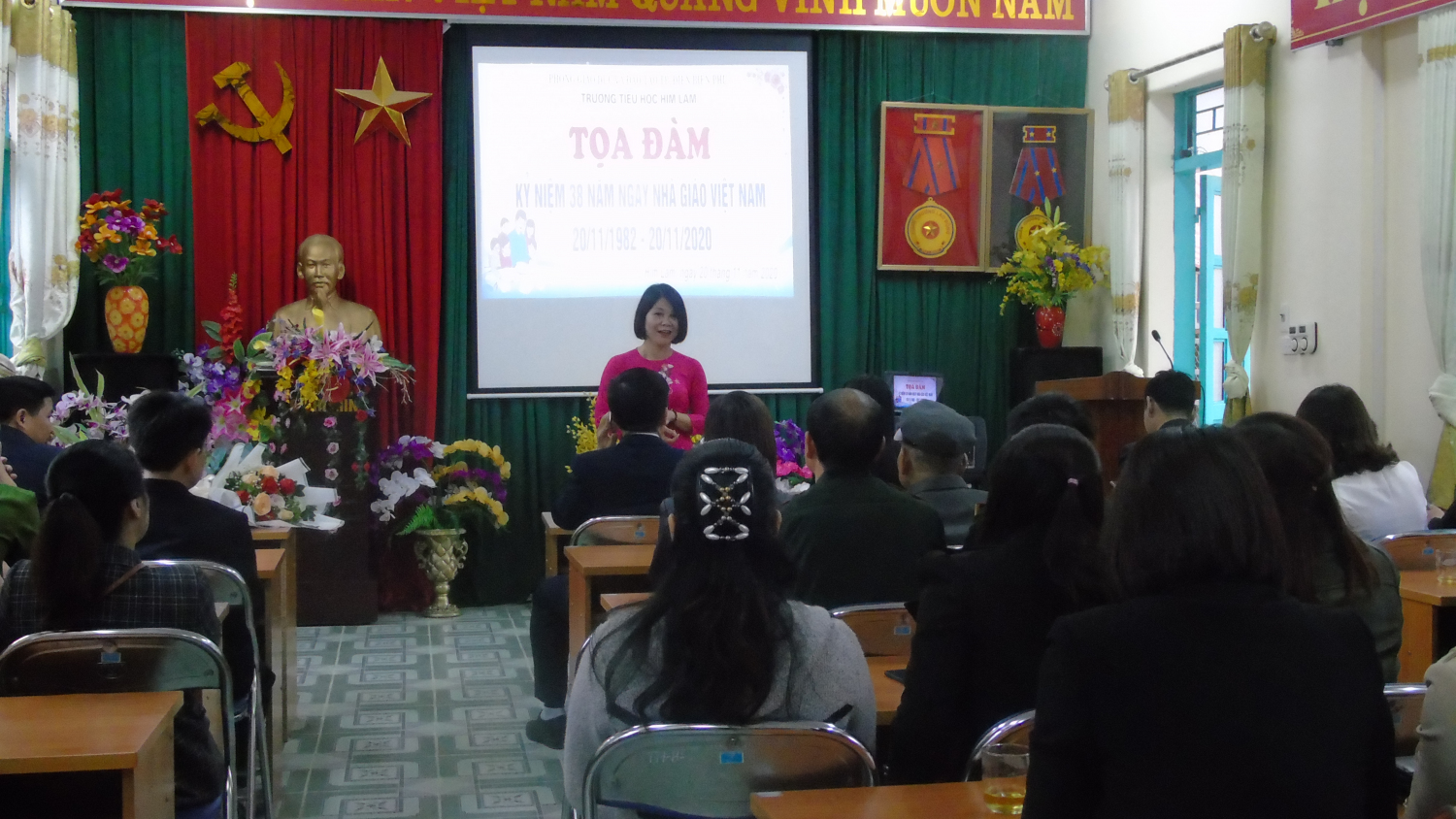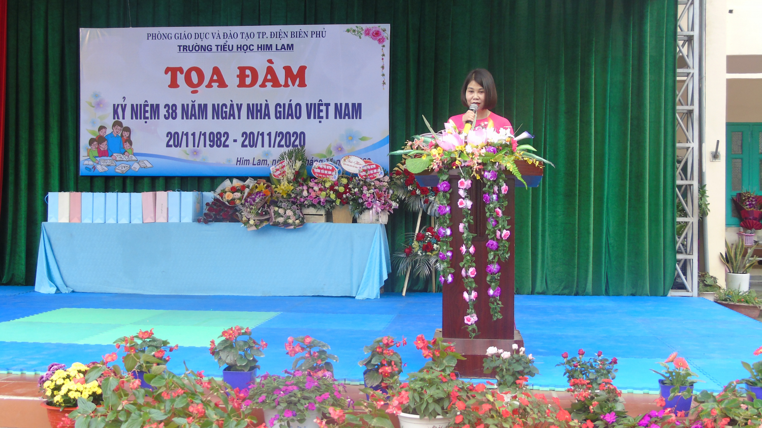 Thay mặt Ban giám hiệu, cô Đinh Thị Thanh Nhàn – Bí thư Chi bộ - Hiệu trưởng nhà trường đã phát biểu khai mạc, ôn lại ý nghĩa của ngày 20/11 và trao tặng các món quà lưu niệm cho các thầy cô giáo đã từng công tác tại nhà trường như một lời tri ân đến những đóng góp, cống hiến không mệt mỏi của các thầy cô giáo trong suốt bề dày thành tích của nhà trường. Đồng thời động viên và khuyến khích các thầy cô giáo tiếp tục phấn đấu vì sự nghiệp trồng người.