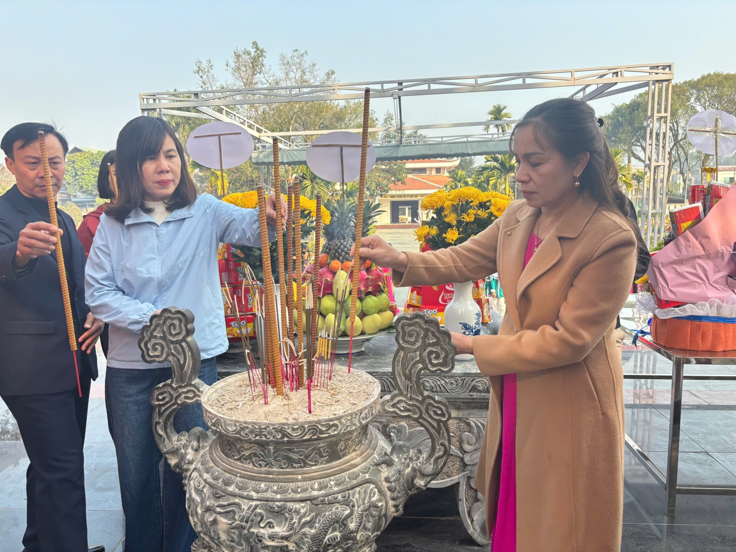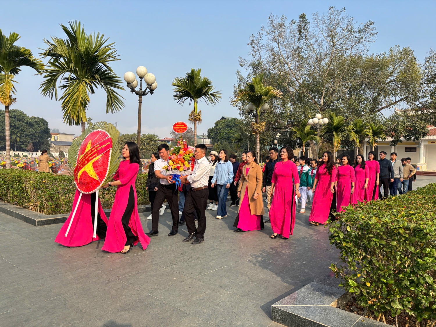 Trước anh linh các Anh hùng liệt sĩ tại Nghĩa trang Liệt sĩ Him Lam, đoàn đã kính cẩn đặt vòng hoa, thắp nén nhang thơm và dành phút mặc niệm để tưởng nhớ công ơn to lớn của các liệt sĩ, những người con ưu tú của dân tộc đã không tiếc máu xương, anh dũng chiến đấu hy sinh vì độc lập tự do của Tổ quốc, vì cuộc sống bình yên của nhân dân.