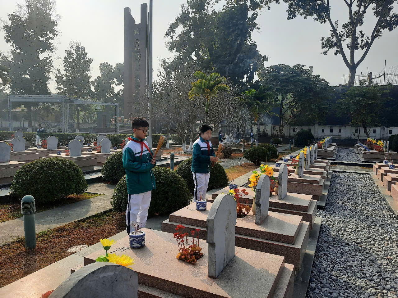 Chương trình thăm viếng nghĩa trang liệt sĩ là một trong những hoạt động thiết thực của các nhà trường nhằm giáo dục lòng yêu nước, đạo lý “Uống nước nhớ nguồn” cho các thế hệ trẻ. Những nén hương thơm được thắp lên cùng những lời tri ân sâu sắc đối với các liệt sĩ như một lời nhắc nhở các thế hệ học sinh hôm nay và mai sau hãy sống sao cho xứng đáng với sự hy sinh cao cả của các thế hệ cha anh đi trước.