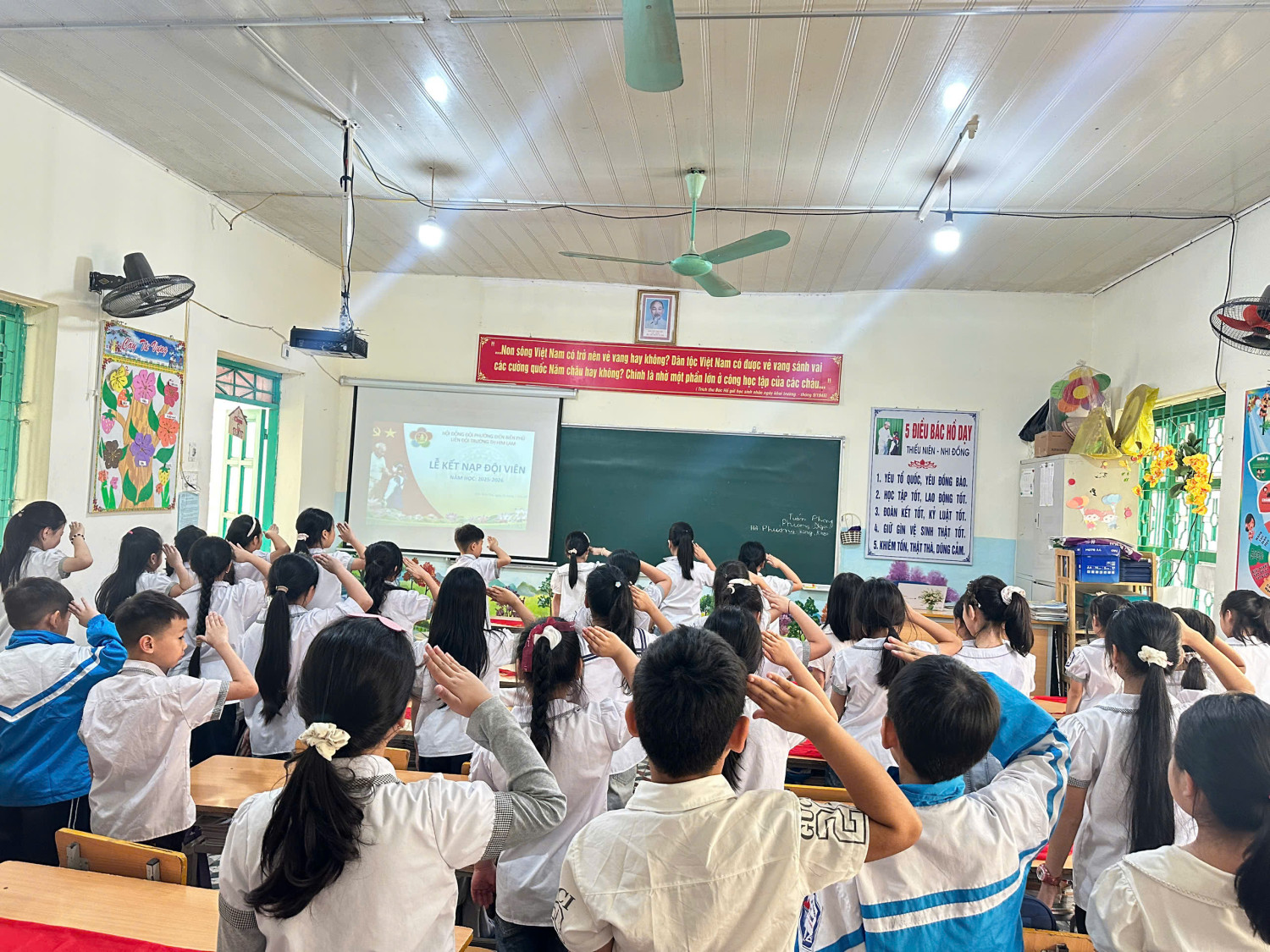 Nổi bật trong chương trình là Lễ kết nạp Đội viên mới dành cho các em học sinh tiêu biểu. Buổi lễ diễn ra trong không khí trang nghiêm, xúc động, đánh dấu bước trưởng thành của các em. Trong đợt này, 112 em thiếu nhi ưu tú đã được vinh dự đứng vào hàng ngũ Đội Thiếu niên Tiền phong Hồ Chí Minh, hứa hẹn trở thành những đội viên gương mẫu, tích cực trong học tập và rèn luyện. Trên vai các em là chiếc khăn quàng đỏ thắm – biểu tượng của niềm tự hào, trách nhiệm và tinh thần phấn đấu không ngừng trong học tập, rèn luyện.