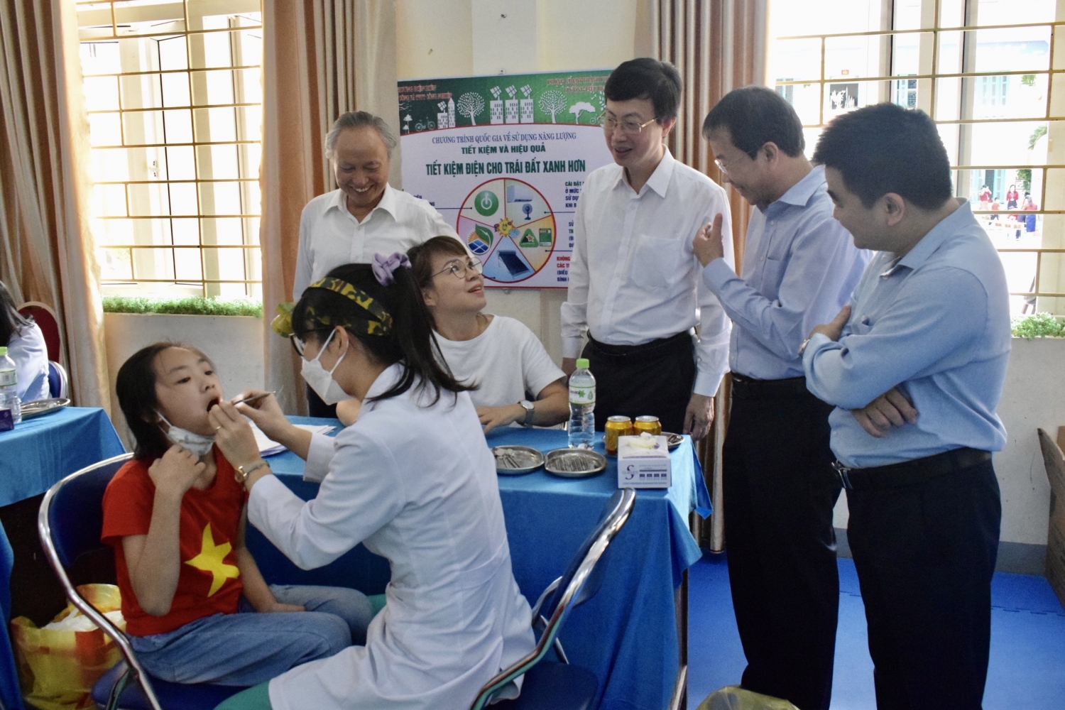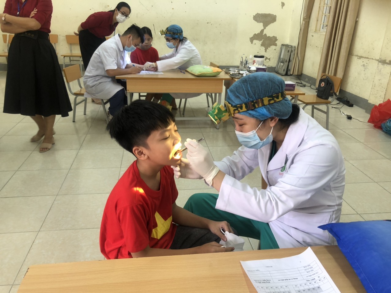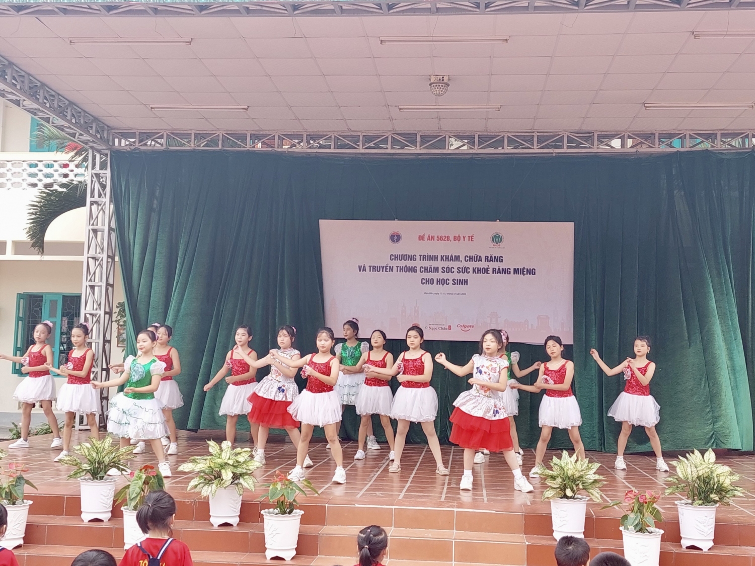 Về làm việc tại trường có Phó giáo sư - Tiến sĩ Nguyễn Quang Bình – Phó giám đốc Bệnh viện Răng Hàm Mặt Trung ương - Trưởng đoàn cùng các bác sĩ chuyên khoa của Bệnh viện Răng Hàm Mặt Trung ương. Đoàn đã khám, tư vấn cho 100% CBGVNV và HS nhà trường, điều trị tại chỗ cho HS bị một số bệnh về răng. Trong buổi sáng đoàn đã tổ chức tuyên truyền cho CBGVNV và HS về cách chăm sóc răng miệng. Với thông điệp “4 số 2” đó là: Một ngày đánh răng 2 lần, mỗi lần đánh răng trong 2 phút, hạn chế ăn sau 2 giờ, một năm khám răng định kì 2 lần đã giúp cho các em nhớ ngay nội dung tuyên truyền. Các bác sĩ còn hướng dẫn cho các em học sinh cách lựa chọn bàn chải đánh răng, kem đánh răng, cách đánh răng, cách dùng chỉ nha khoa, vệ sinh răng miệng.