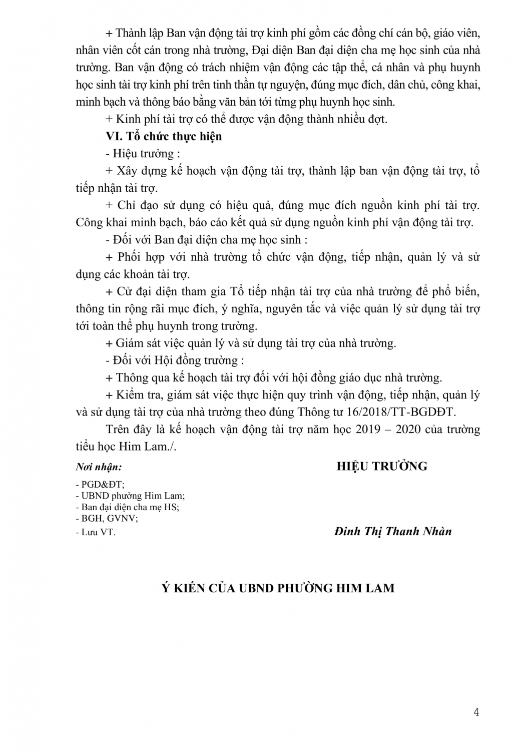 KẾ HOẠCH VẬN ĐỘNG TÀI TRỢ NĂM HỌC 2019-2020