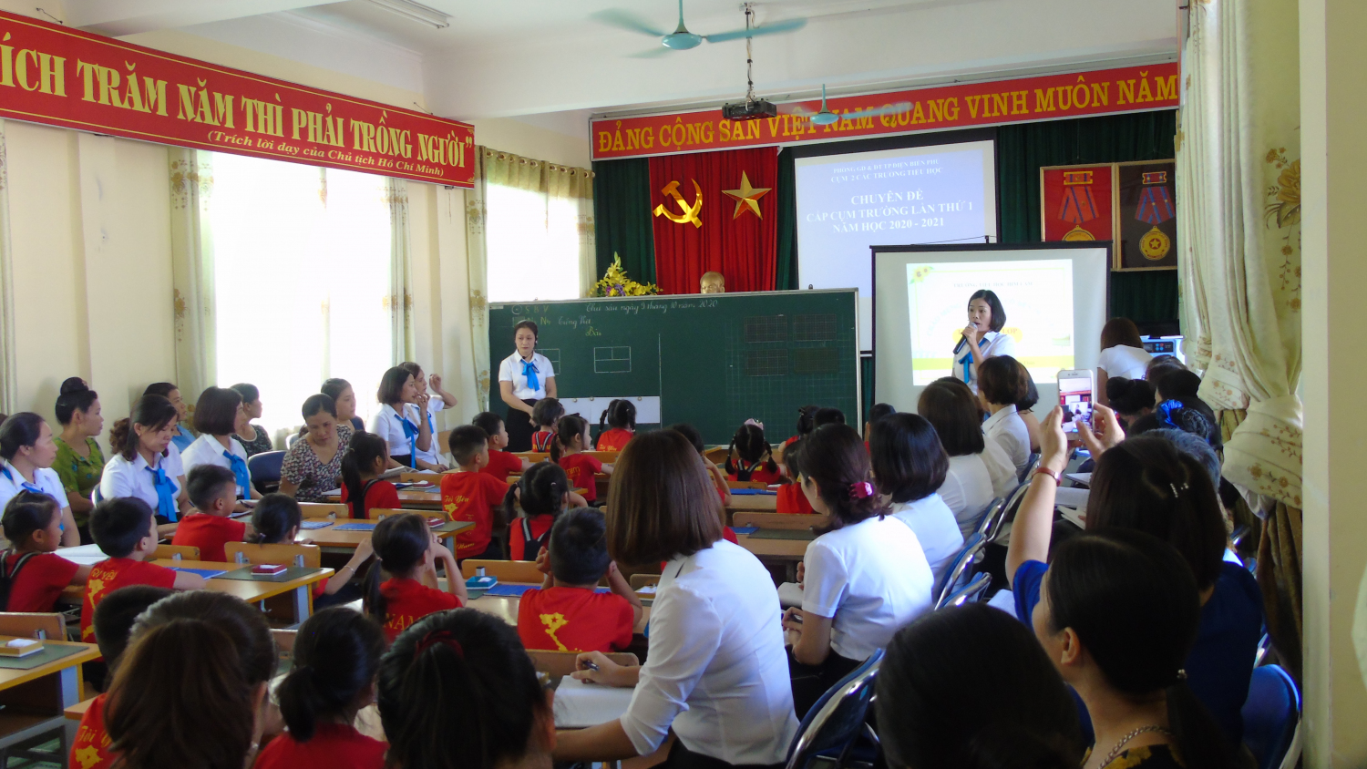 Về dự buổi Chuyên đề có đồng chí Hoàng Bích Huệ, đồng chí Nguyễn Thị Mỹ Hương CBCM phòng GDĐT thành phố Điện Biên Phủ, các đồng chí Hiệu trưởng, Phó Hiệu trưởng, giáo viên dạy lớp 1 và các đồng chí tổ trưởng, tổ phó các tổ chuyên môn của các trường Tiểu học trong cụm số 2 cấp tiểu học, thành phố Điện Biên Phủ.
