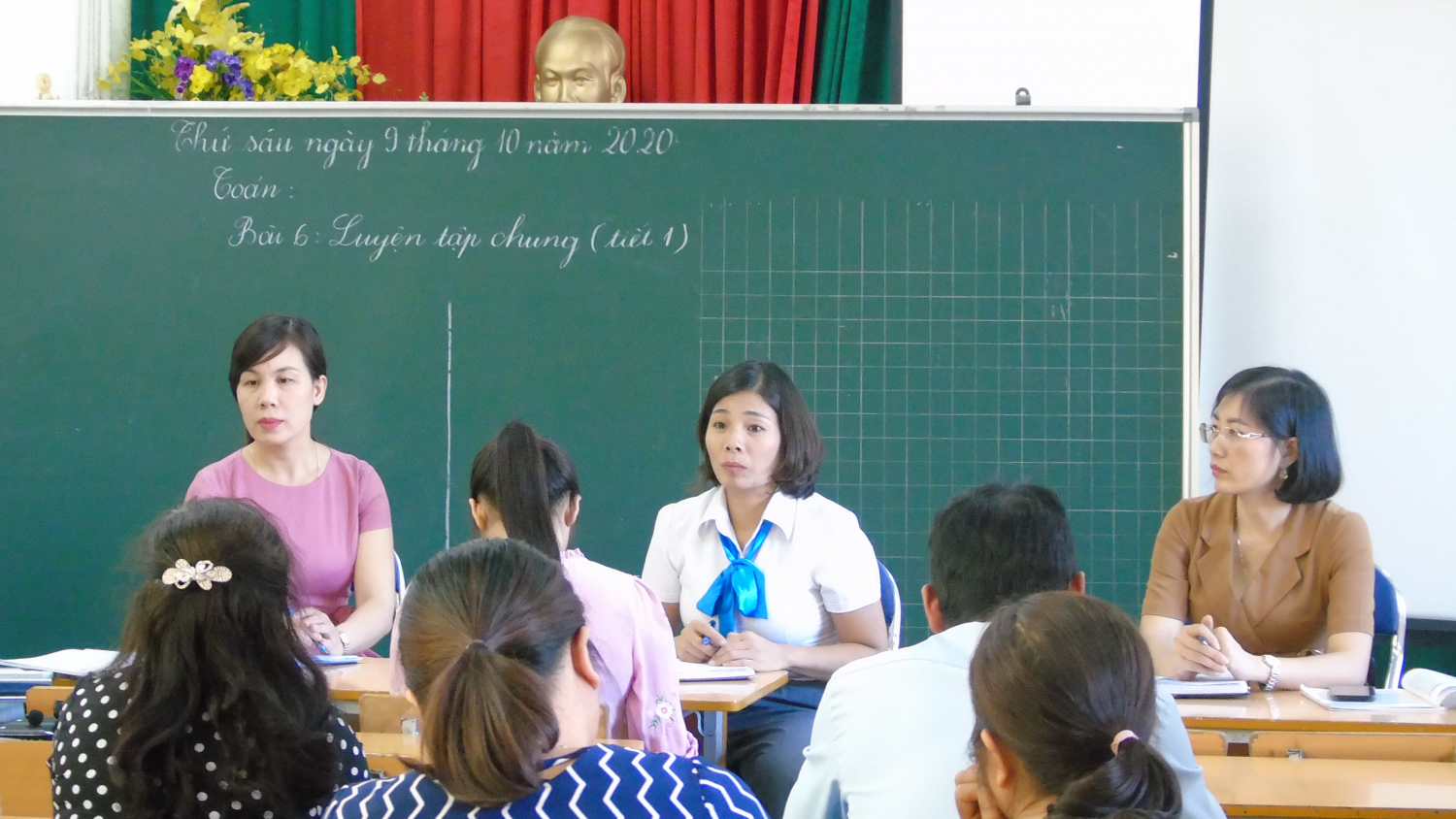 Thảo luận, rút kinh nghiệm sau mỗi giờ dạy, cán bộ quản lý, giáo viên các trường đánh giá cao sự chuẩn bị bài chu đáo, giáo viên linh hoạt sáng tạo trong việc chuẩn bị bài và lên lớp, ứng dụng hiệu quả công nghệ thông tin trong tiết dạy.