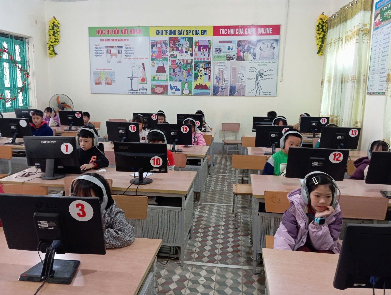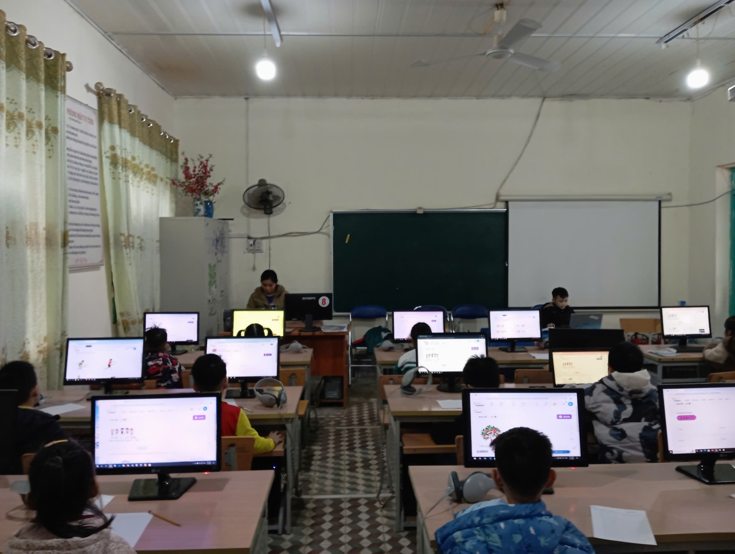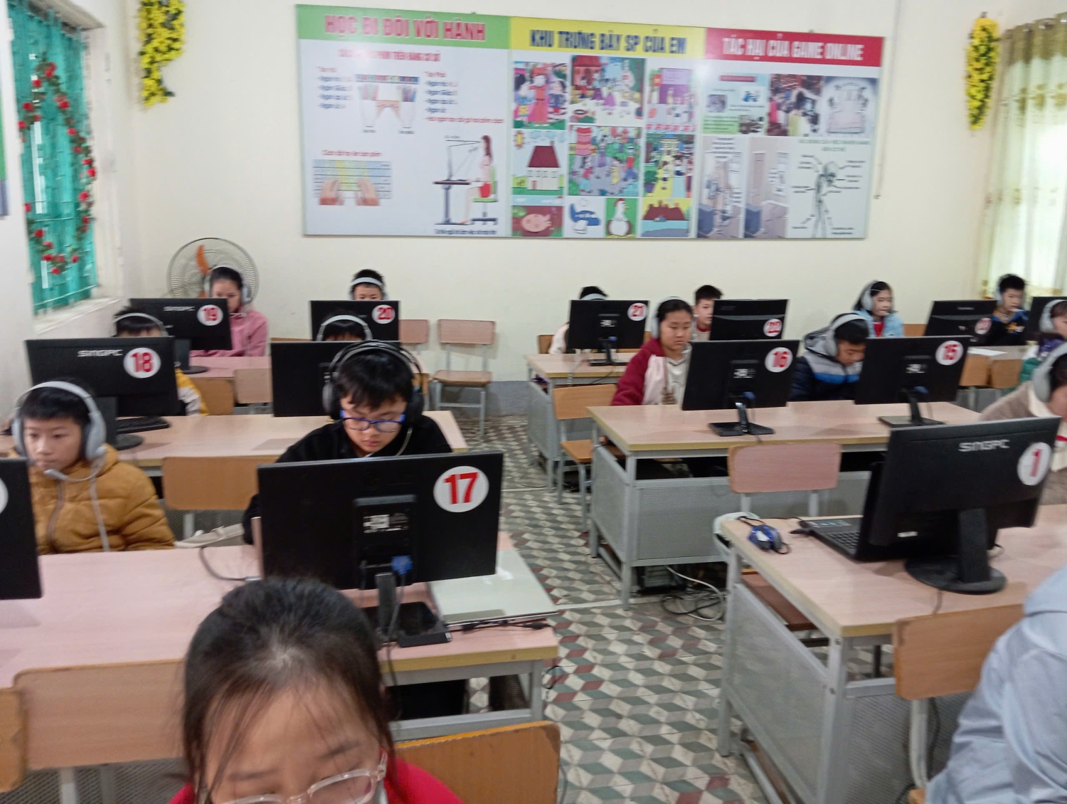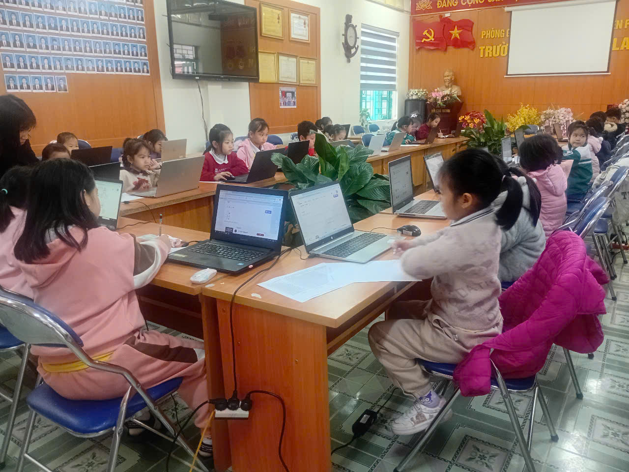 Để tổ chức tốt cuộc thi nhà trường đã chuẩn bị đầy đủ về cơ sở vật chất: phòng máy, hệ thống mạng, điện. Với số lượng học sinh tham dự thi khá lớn nên nhà trường đã huy động phụ huynh hỗ trợ thêm nhiều máy tính xách tay để đảm bảo đủ cho các em tham gia thi tại 02 phòng thi.