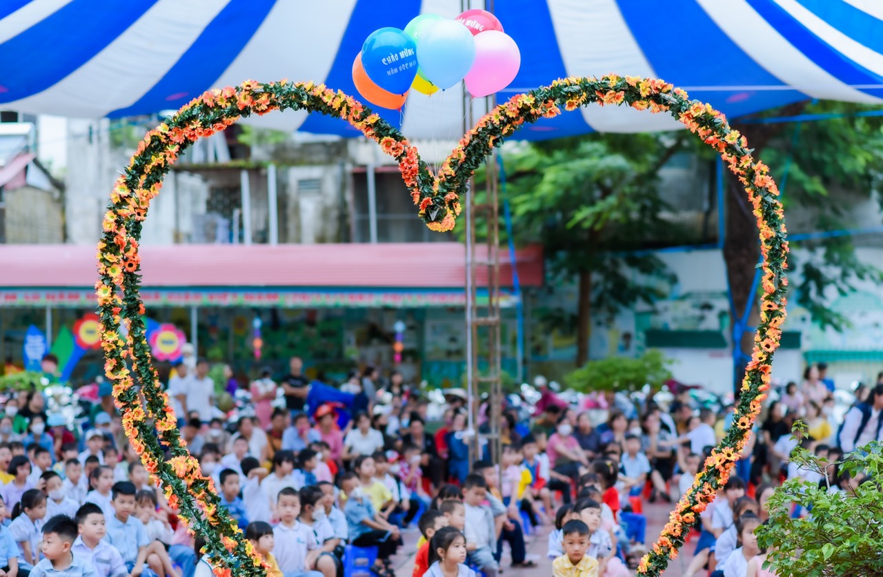 Ngay từ sáng sớm, các thầy cô giáo đã đứng ở cổng trường để đón và dắt từng học sinh vào hàng. Sau khi tập trung đông đủ các em được thưởng thức một chương trình văn nghệ do các bạn học sinh trong đội sơn ca của nhà trường biểu diễn. Năm học 2023-2024, nhà trường có 6 lớp 1 với 222 em học sinh. Nhà trường đã phân công 6 giáo viên giàu kinh nghiệm, có trình độ chuyên môn tốt, giàu lòng yêu thương, tận tâm với học sinh làm chủ nhiệm các lớp khối 1. Các em học sinh được xếp vào các lớp và nhận cô giáo chủ nhiệm của mình. Mỗi em học sinh được các thầy cô trong Ban Giám hiệu tặng một chiếc bút chì. Món quà tuy nhỏ nhưng là nguồn động viên khích lệ để các em học sinh có hứng thú đến trường. Có lẽ điều thú vị nhất với các em là được chơi các trò chơi và nhận những phần quà ý nghĩa.