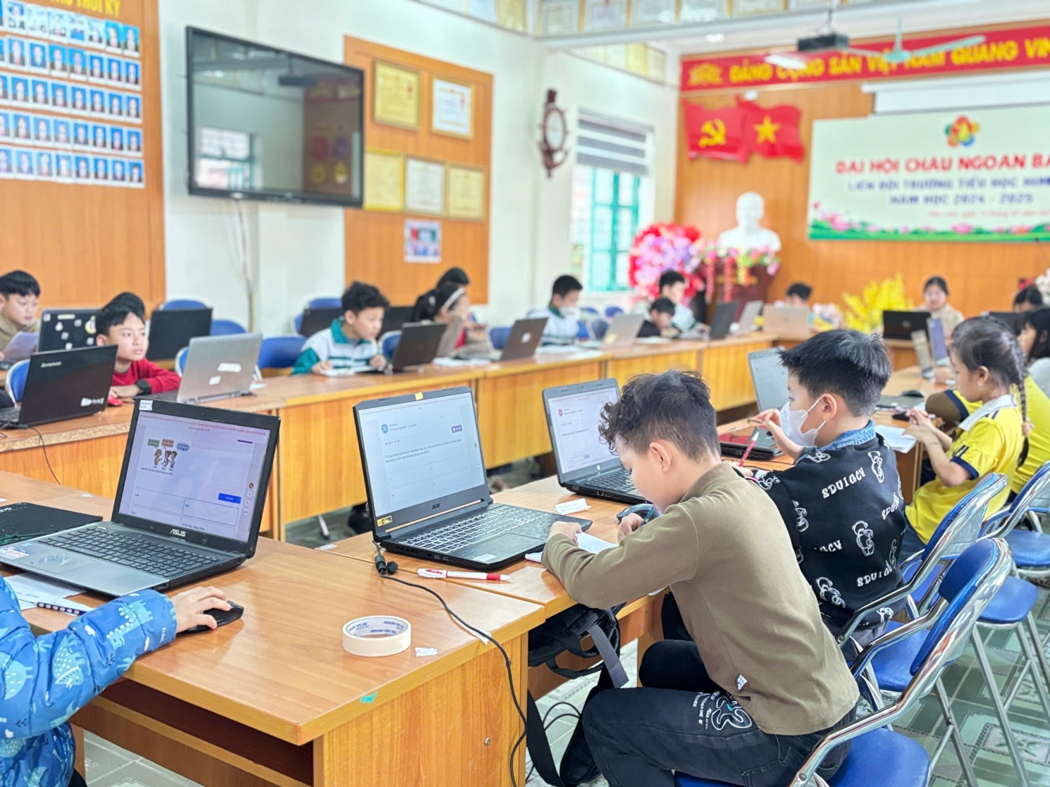 Đến với lần thử sức thứ tư trong mùa giải Violympic Toán năm học này có 173 thí sinh tham gia. Trong đó: khối 2: 58 em, khối 3: 51 em, khối 4: 36 em, khối 5: 28 em. Nhà trường đã chuẩn bị chu đáo các điều kiện về CSVC, thiết bị máy tính…để tạo điều kiện tốt nhất cho các em thể hiện, phát huy hết khả năng của mình. Với tâm lý hào hứng, tinh thần sẵn sàng chinh phục thử thách, với sự lỗ lực, quyết tâm và tập trung cao chỉ sau một khoảng thời gian ngắn các em đã nhanh chóng hoàn thành vòng thi của mình. Kết quả: Có 50/173 em đạt từ 200 điểm trở lên. Trong đó có 05 em đạt từ 250 điểm trở lên. Tiêu biểu như em: Trần Đức Minh lớp 2a5 và em Phạm Anh Đức lớp 5A4 đạt 270 điểm, các em Đặng Tiến Đạt lớp 2a6, Vũ Minh Thành lớp 2a4 và em Nguyễn Việt Anh lớp 5A2 đạt 250 điểm. Có rất nhiều em đạt 220, 230, 240 điểm đến từ tất cả các khối lớp. Thành công của cuộc thi không chỉ dừng lại ở kết quả mà còn là động lực để các em tiếp tục rèn luyện, phấn đấu và vươn xa hơn trên con đường học tập của mình. Đồng thời góp phần nâng cao chất lượng giáo dục môn Toán nói riêng và chất lượng giáo dục toàn diện trong nhà trường nói chung. Xin chúc mừng tất cả các em đã tham gia cuộc thi. Các thầy cô luôn đồng hành và tiếp sức cho các em trong các cuộc thi và trong suốt chặng đường học tập của các em. Hy vọng rằng, niềm đam mê Toán học sẽ giúp các em sẽ tiếp tục chinh phục những đỉnh cao mới trong tương lai. MỘT SỐ HÌNH ẢNH TRONG CUỘC THI