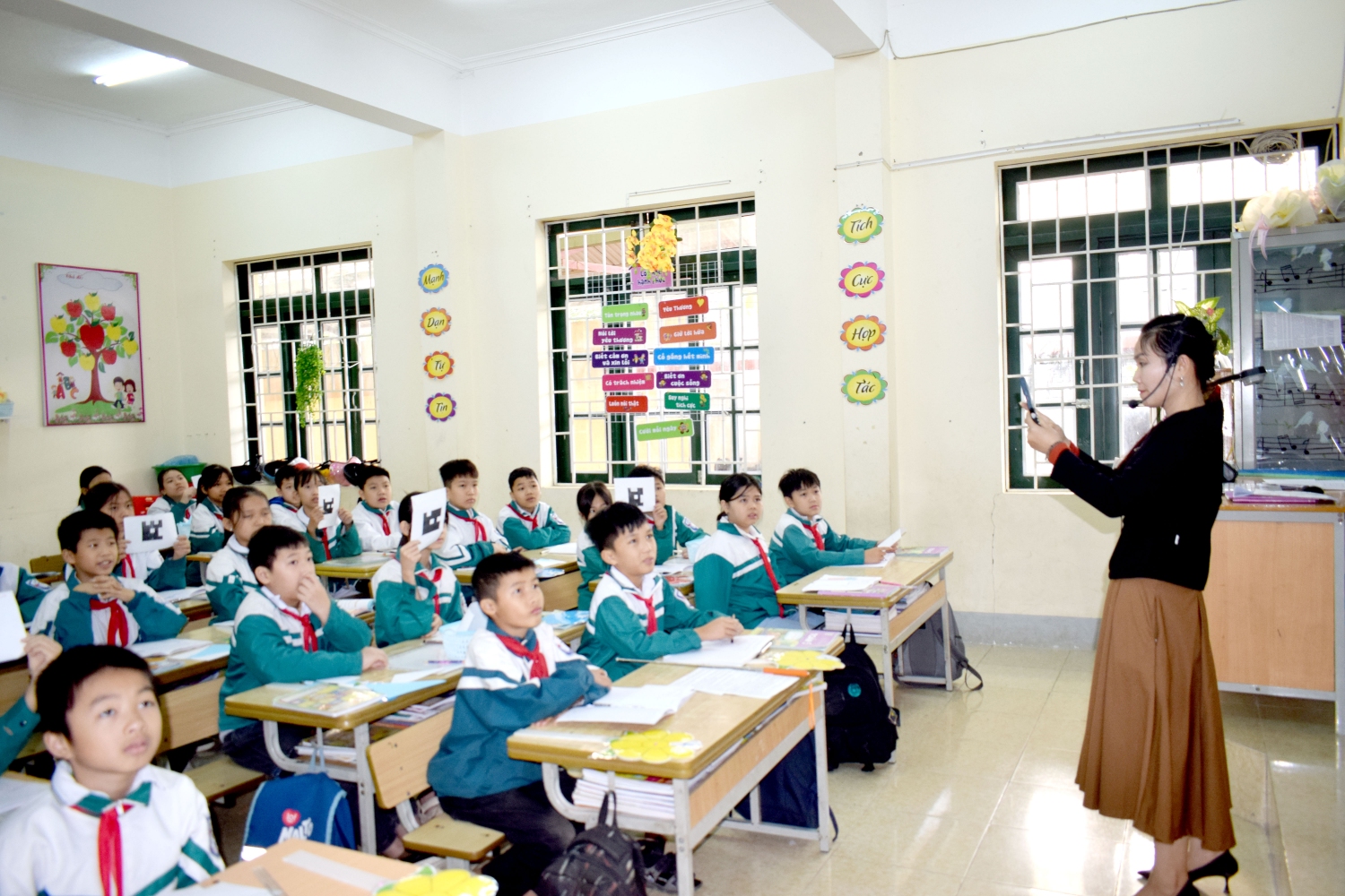 Ứng dụng công nghệ AI: Giáo viên sử dụng phần mềm PLICKERS trong phần kiểm tra trắc nghiệm, giúp nhanh chóng đánh giá chính xác bài làm của từng học sinh, bao quát toàn diện mức độ hiểu bài của cả lớp.