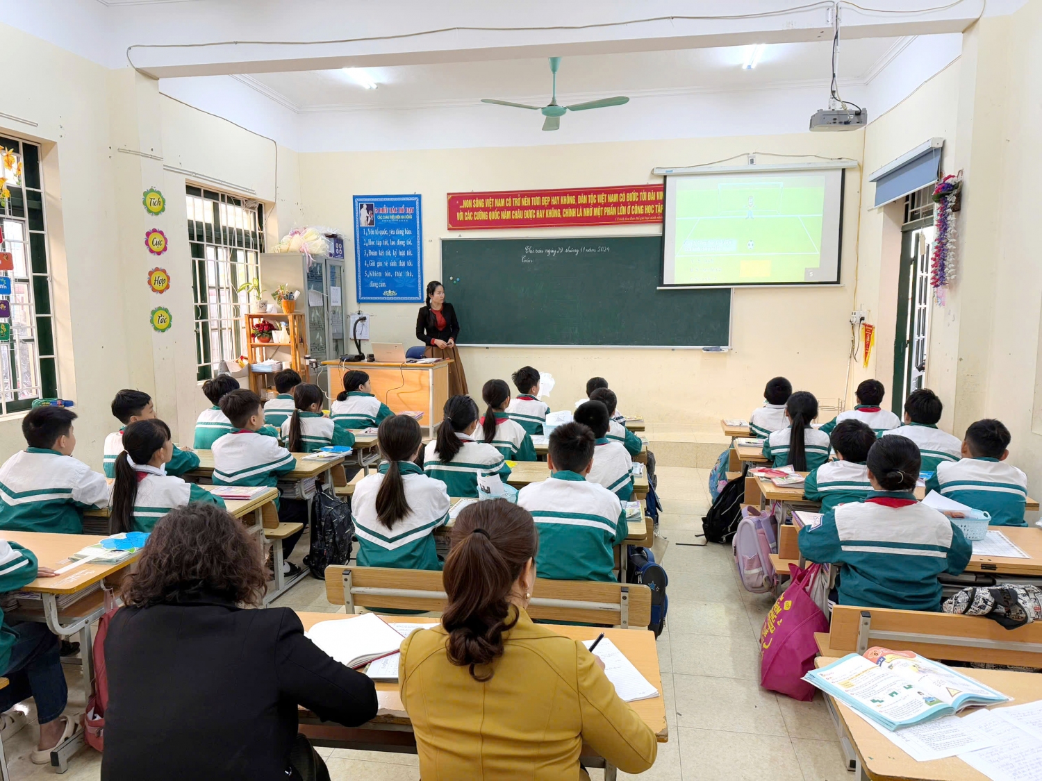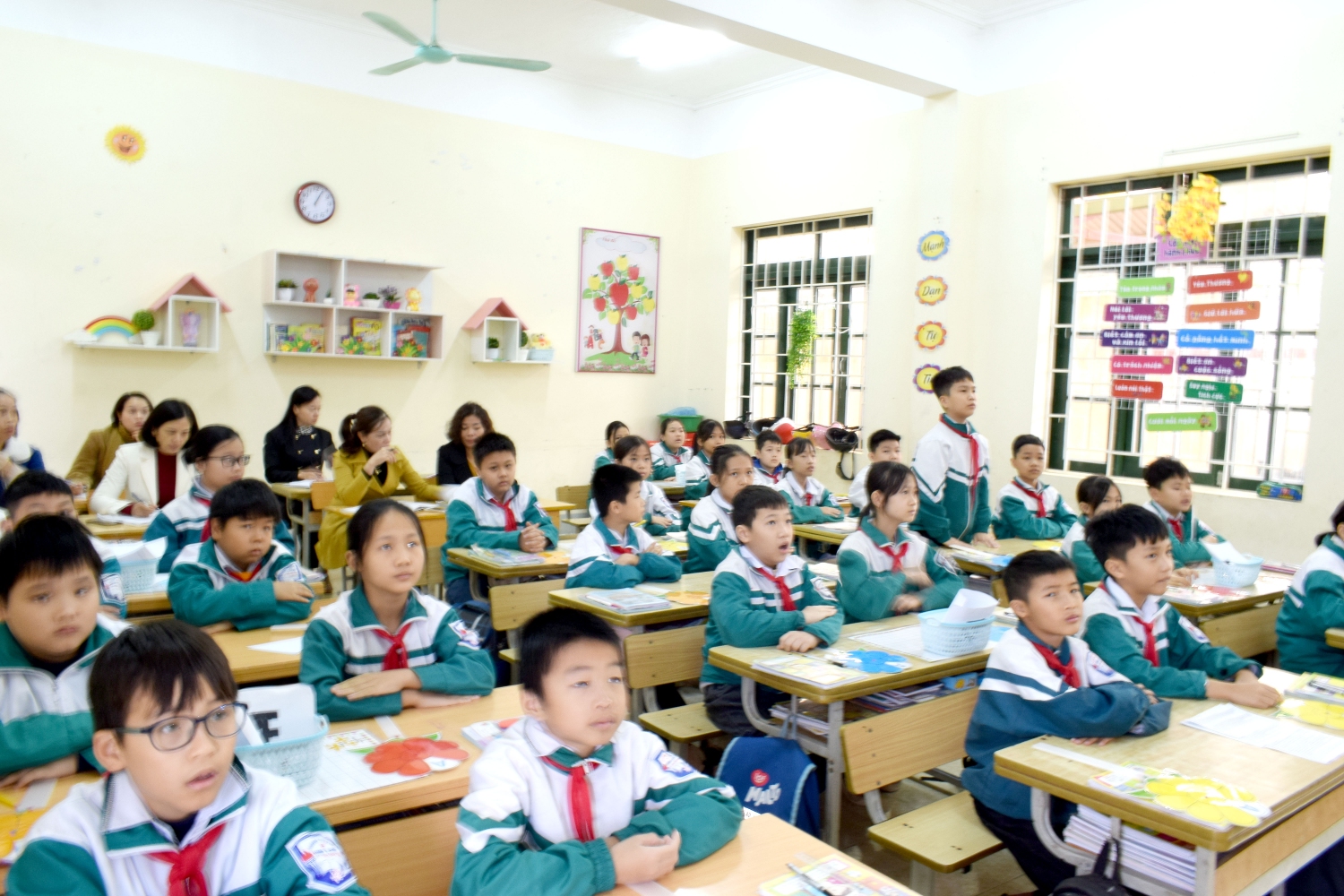 Tham dự tiết chuyên đề có các thầy, cô giáo trong Ban giám hiệu nhà trường và toàn thể giáo viên trong tổ chuyên môn khối 5.