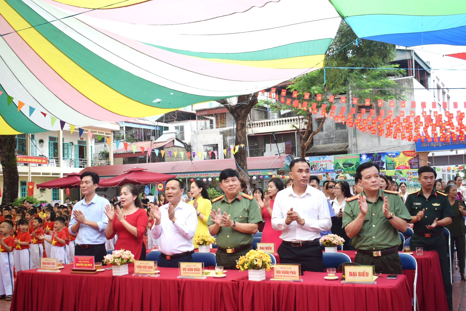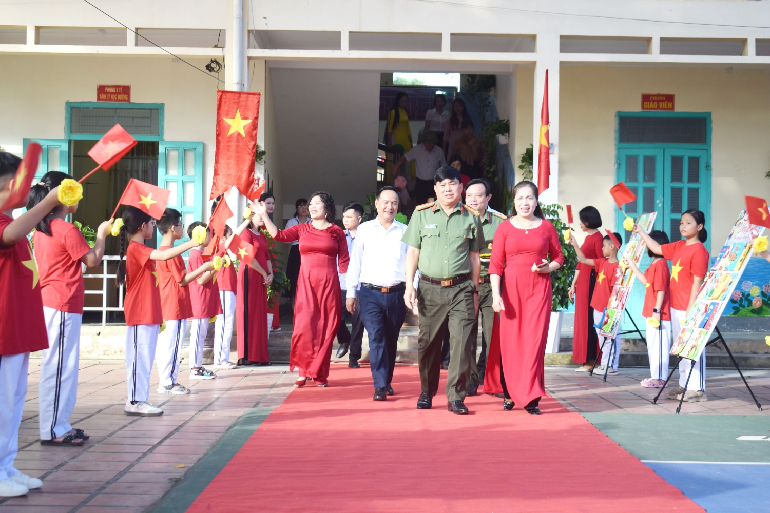 Về dự Lễ khai giảng với thầy trò nhà trường có: Đồng chí Đại tá Vũ Văn Đấu - Ủy viên Ban thường vụ Tỉnh ủy, Giám đốc Công an tỉnh Điện Biên; Đồng chí Trần Hữu Năm – Phó Bí thư Thường trực Đảng uỷ, Bí thư Đảng uỷ các cơ quan Đảng phường Điện Biên Phủ; Đồng chí Bùi Xuân Phái - Chánh Văn phòng Sở Giáo dục và Đào tạo tỉnh Điện Biên; Đồng chí Nguyễn Thị Huệ - Chuyên viên phòng GDMN-TH Sở Giáo dục và Đào tạo tỉnh Điện Biên; Đồng chí Trịnh Minh Ngọc - Phó trưởng Phòng Văn hóa - Xã hội; Đồng chí Thẩm Thị Nga – Viên chức tăng cường Phòng Văn hóa - Xã hội phường Điện Biên Phủ; Đại diện đơn vị kết nghĩa Đại đội 14 trung đoàn 82; Đại diện các cơ quan, doanh nghiệp; Ban đại diện CMHS trường, cùng đông đảo phụ huynh học sinh; Tập thể 51 CBQLGVNV và 968 học sinh. Sự hiện diện của các quý vị đại biểu, khách quý là động viên to lớn, khích lệ thầy và trò nhà trường bước vào năm học mới với nhiều niềm tin và quyết tâm.