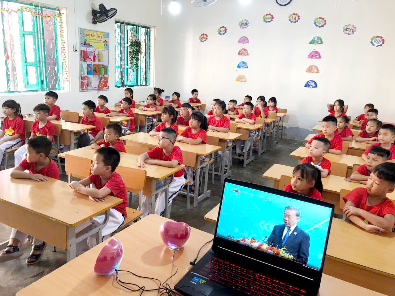Trong không khí trang nghiêm của buổi lễ, toàn thể cán bộ, giáo viên và học sinh nhà trường đã được lắng nghe đồng chí Đại tá Vũ Văn Đấu - Ủy viên Ban thường vụ Tỉnh ủy, Giám đốc Công an tỉnh Điện Biên đại diện Lãnh đạo Tỉnh trang trọng đọc toàn văn Thư của Chủ tịch nước gửi ngành Giáo dục nhân ngày khai giảng năm học mới. Những lời căn dặn và gửi gắm của Chủ tịch nước là nguồn động viên to lớn, tiếp thêm niềm tin và quyết tâm cho thầy trò nhà trường trong năm học mới.