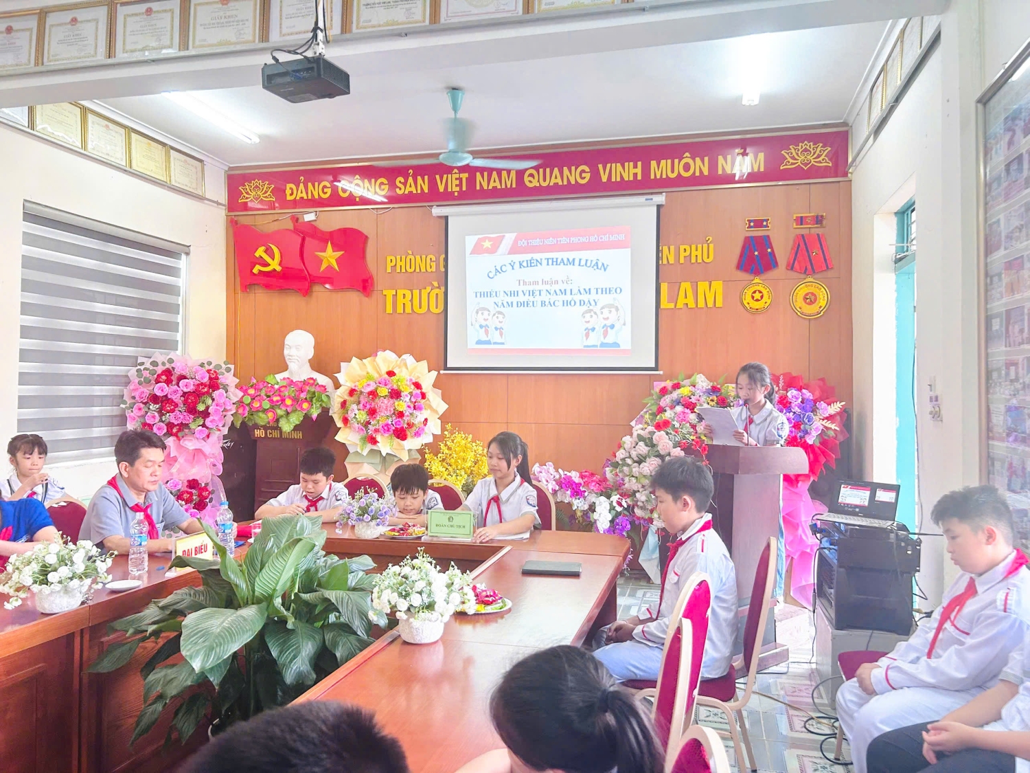 Đến dự và chỉ đạo Đại hội có: Cô giáo Nguyễn Thị Bích - Bí thư Chi bộ, Hiệu trưởng nhà trường, thầy giáo Hà Đình Phương - Phó Bí thư Chi bộ, Phó Hiệu trưởng, Cô giáo Trịnh Thị Thị Thu - Bí thư Chi đoàn trường, Cô giáo Nguyễn Thanh Thủy - Tổng phụ trách Đội, các thầy cô phụ trách các chi đội cùng toàn thể đội viên tiêu biểu đại diện cho chi đội, lớp nhi đồng trong Liên đội.