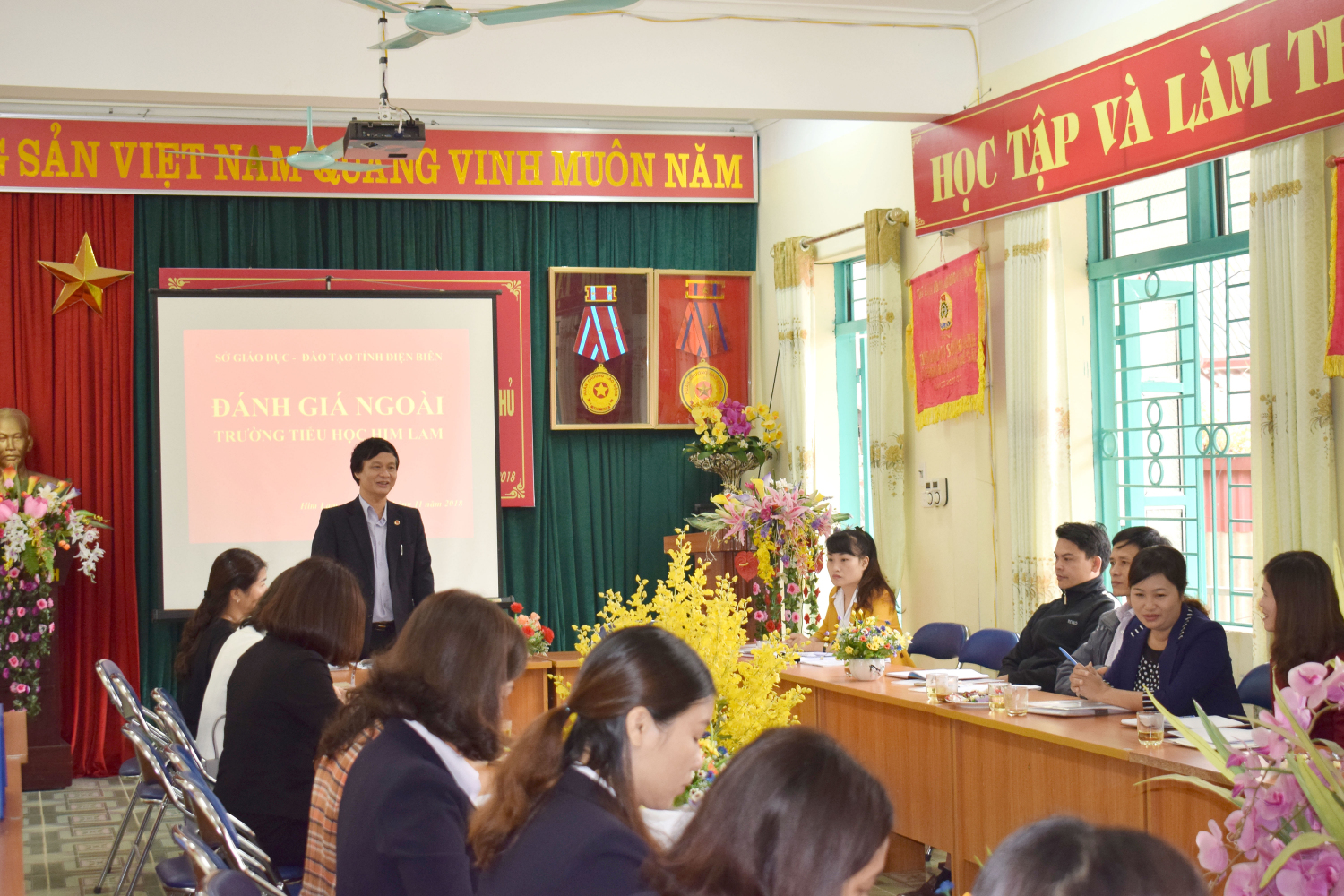 Ngày 05, 06/11/2018 trường Tiểu học Him Lam - Thành phố Điện Biên Phủ đón đoàn đánh giá ngoài của Sở Giáo dục và Đào tạo do đồng chí Đào Thái Lai - Trưởng phòng Tiểu học Sở Giáo dục và Đào tạo làm trưởng đoàn cùng các thành viên trong đoàn về khảo sát chính thức tại nhà trường và kiểm tra công nhận thư viện đạt chuẩn theo quy định của Bộ Giáo dục và Đào tạo.