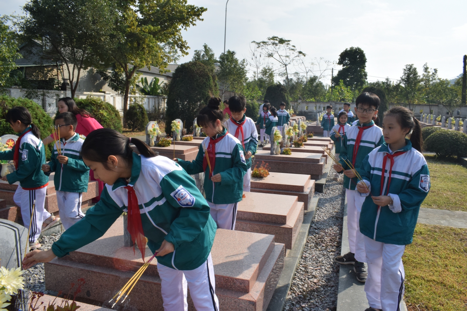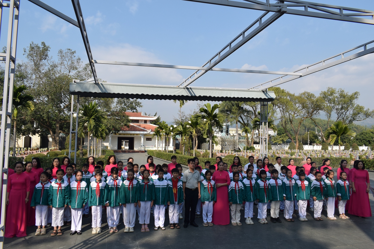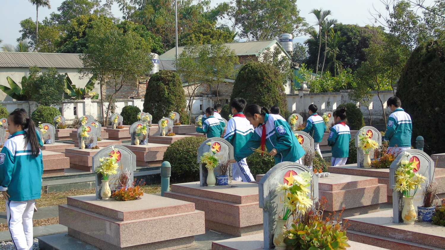 Chiều cùng ngày, thầy và trò nhà trường tổ chức dâng hương tưởng niệm các Liệt sỹ tại nghĩa trang Liệt sỹ Him Lam. Buổi dâng hương tưởng niệm các Liệt sỹ nhắc nhở các em học sinh luôn khắc ghi công ơn to lớn của các anh hùng, liệt sỹ đã ngã xuống vì độc lập, tự do của Tổ quốc.