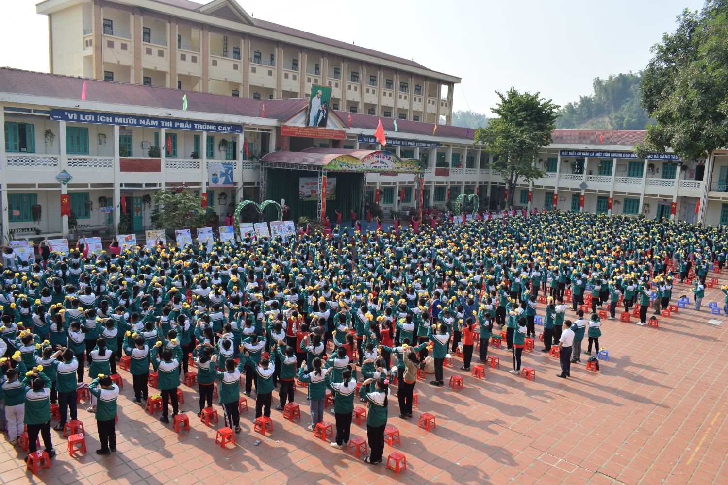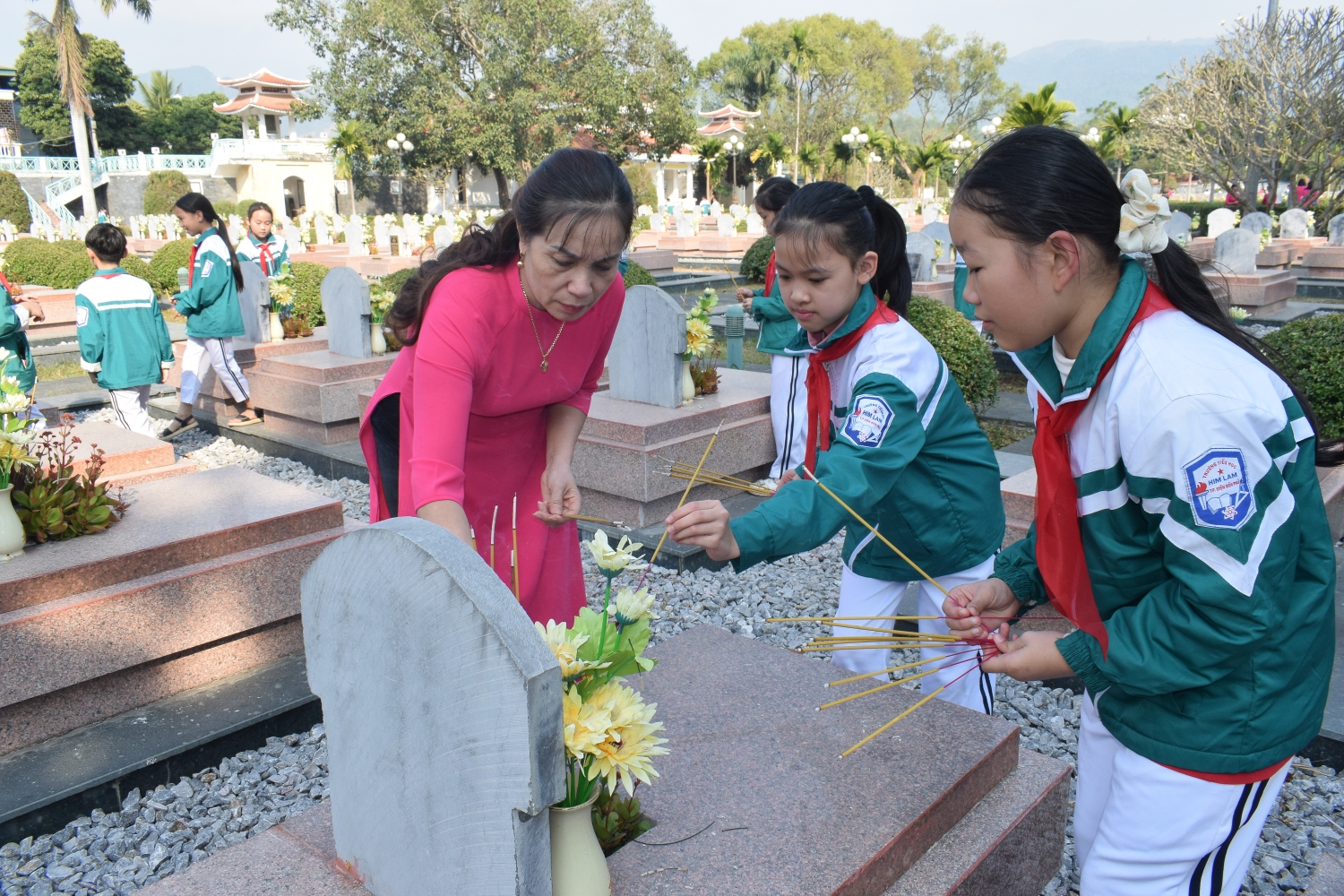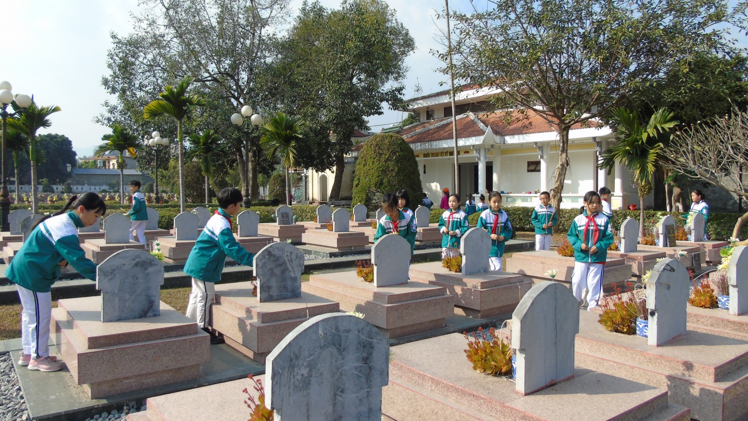 Chiều cùng ngày, thầy và trò nhà trường tổ chức dâng hương tưởng niệm các Liệt sỹ tại nghĩa trang Liệt sỹ Him Lam. Buổi dâng hương tưởng niệm các Liệt sỹ nhắc nhở các em học sinh luôn khắc ghi công ơn to lớn của các anh hùng, liệt sỹ đã ngã xuống vì độc lập, tự do của Tổ quốc.