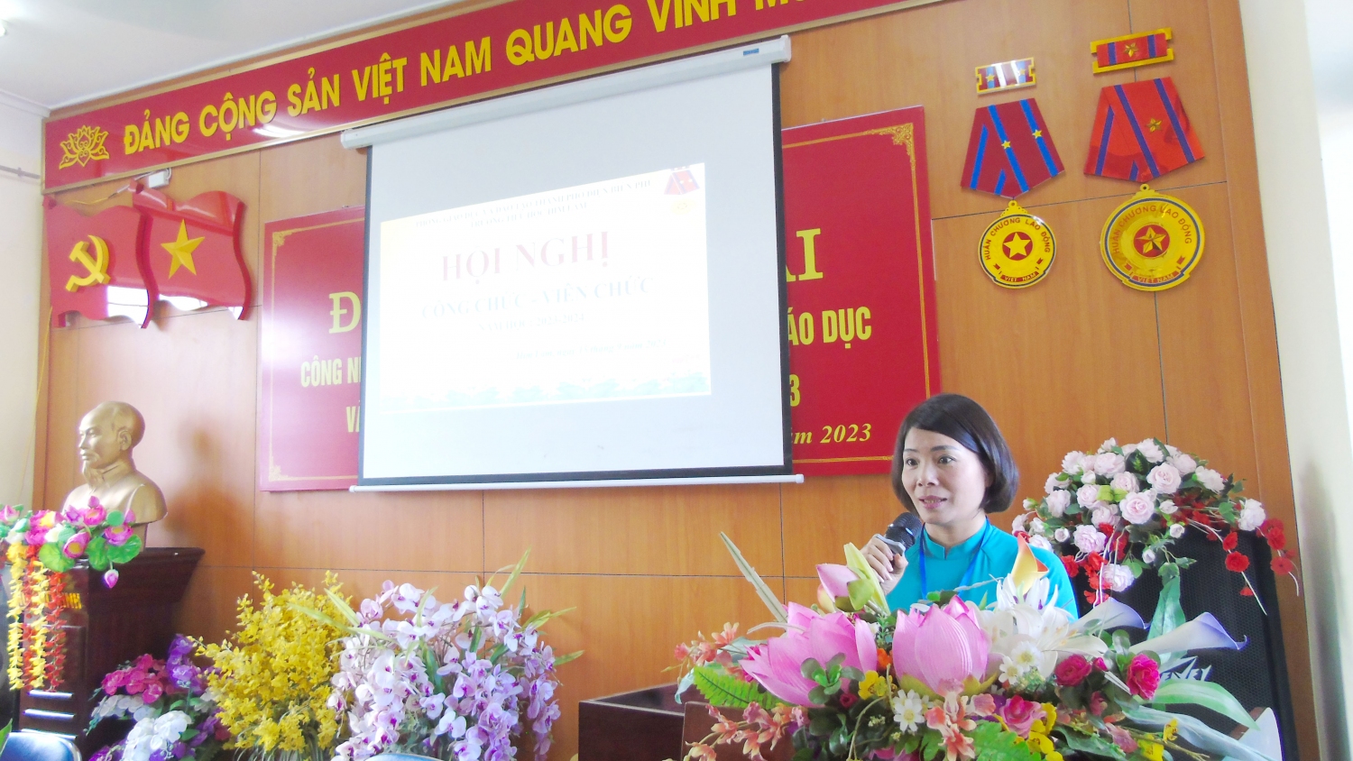 Hòa chung trong niềm vui hân hoan đón chào năm học mới, đồng thời thể hiện quyết tâm thực hiện tốt nhiệm vụ của năm học 2023 - 2024 với chủ đề: “Đoàn kết, kỉ cương, sáng tạo, tiếp tục đổi mới, nâng cao chất lượng giáo dục và đào tạo”, hôm nay, ngày 15/9/2023, trường Tiểu học Him Lam, thành phố Điện Biên Phủ long trọng tổ chức Hội nghị cán bộ viên chức năm học 2023-2024.