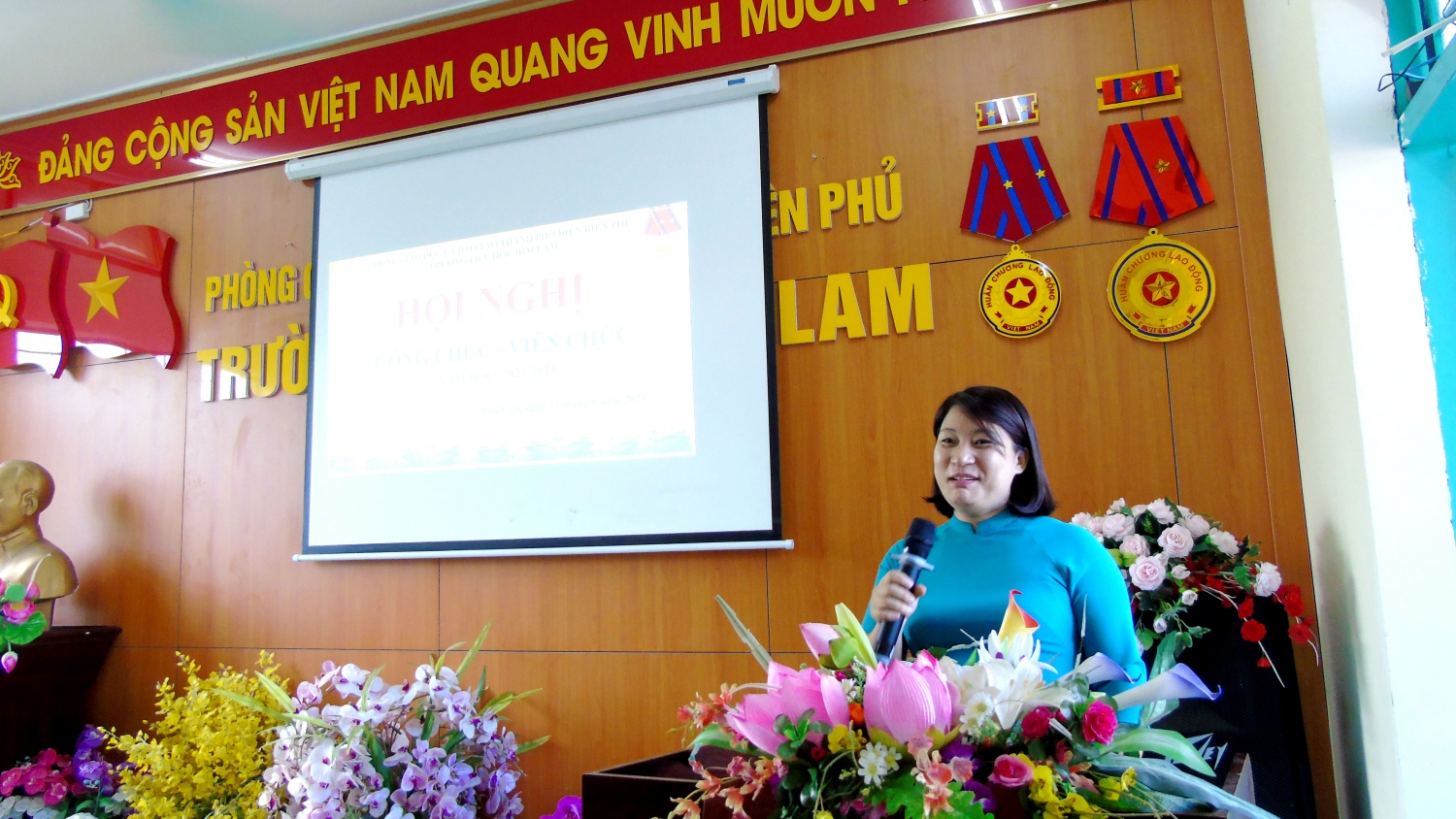 Cũng trong Hội nghị, toàn thể cán bộ, giáo viên, nhân viên nhà trường được lắng nghe các ý kiến tâm huyết của CB, GV, NV để góp ý cho bản báo cáo tổng kết năm học 2022 – 2023; bản phương hướng nhiệm vụ năm học 2023 – 2024 và được lắng nghe hai ý kiến tham luận về “Kinh nghiệm xây dựng lớp học hạnh phúc” của cô Lường Thị Mai tổ chuyên môn khối 5 và tham luận về “Phát triển phong trào văn hóa thể dục thể thao trong nhà trường” của cô giáo Nguyễn Thị Nhung tổ chuyên môn khối 2. Tất cả các ý kiến tham gia đều có ý nghĩa xây dựng, thể hiện tinh thần trách nhiệm xây dựng đơn vị ngày càng phát triển.