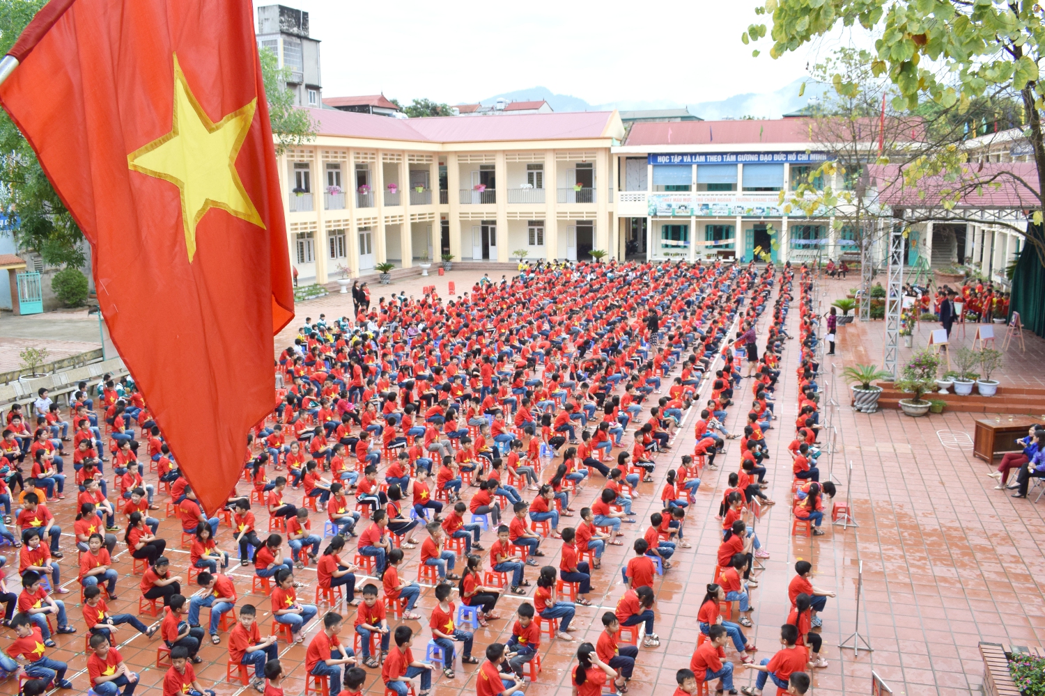 Tham dự buổi ngoại khóa có Ban giám hiệu cùng tất cả các thầy cô giáo và 948 em học sinh của nhà trường.