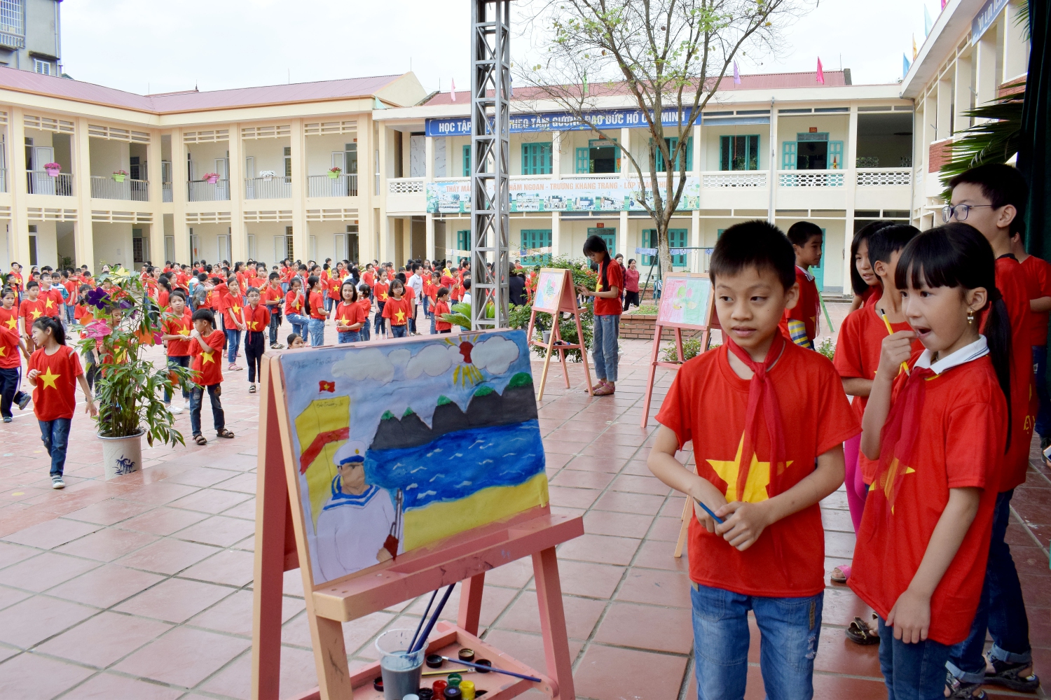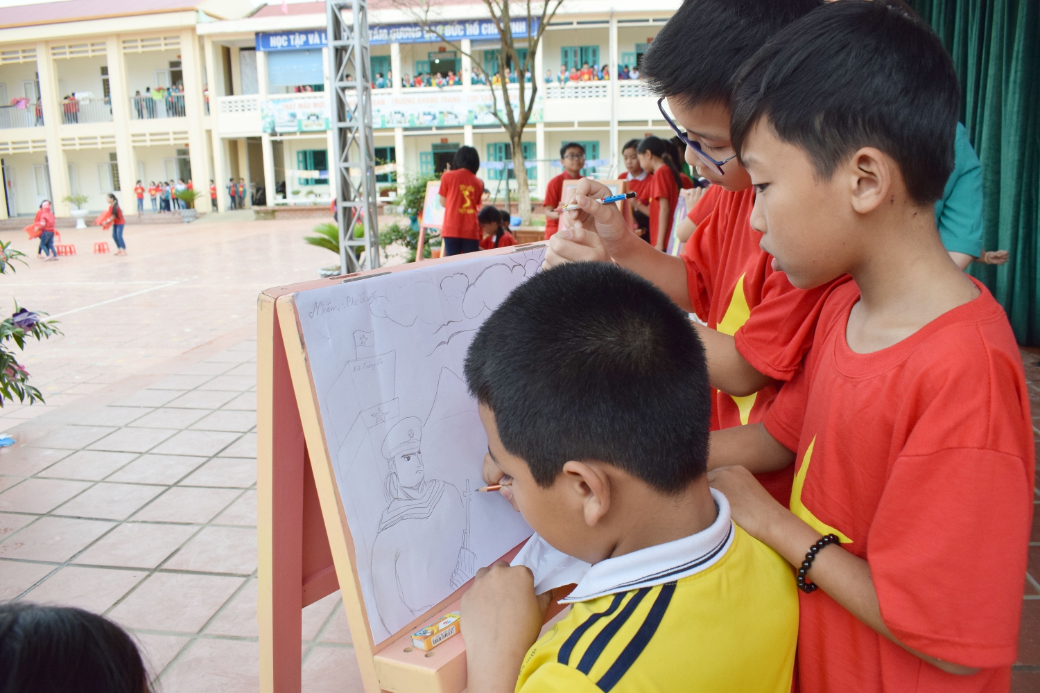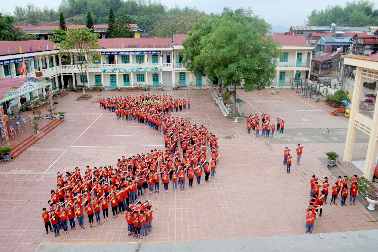 Và cuối cùng là màn xếp hình đất nước Việt Nam đầy ấn tượng đã khơi dậy ở các em học sinh tình yêu quê hương đất nước và với quyết tâm giữ gìn, bảo vệ toàn vẹn lãnh thổ, chủ quyền đất nước.