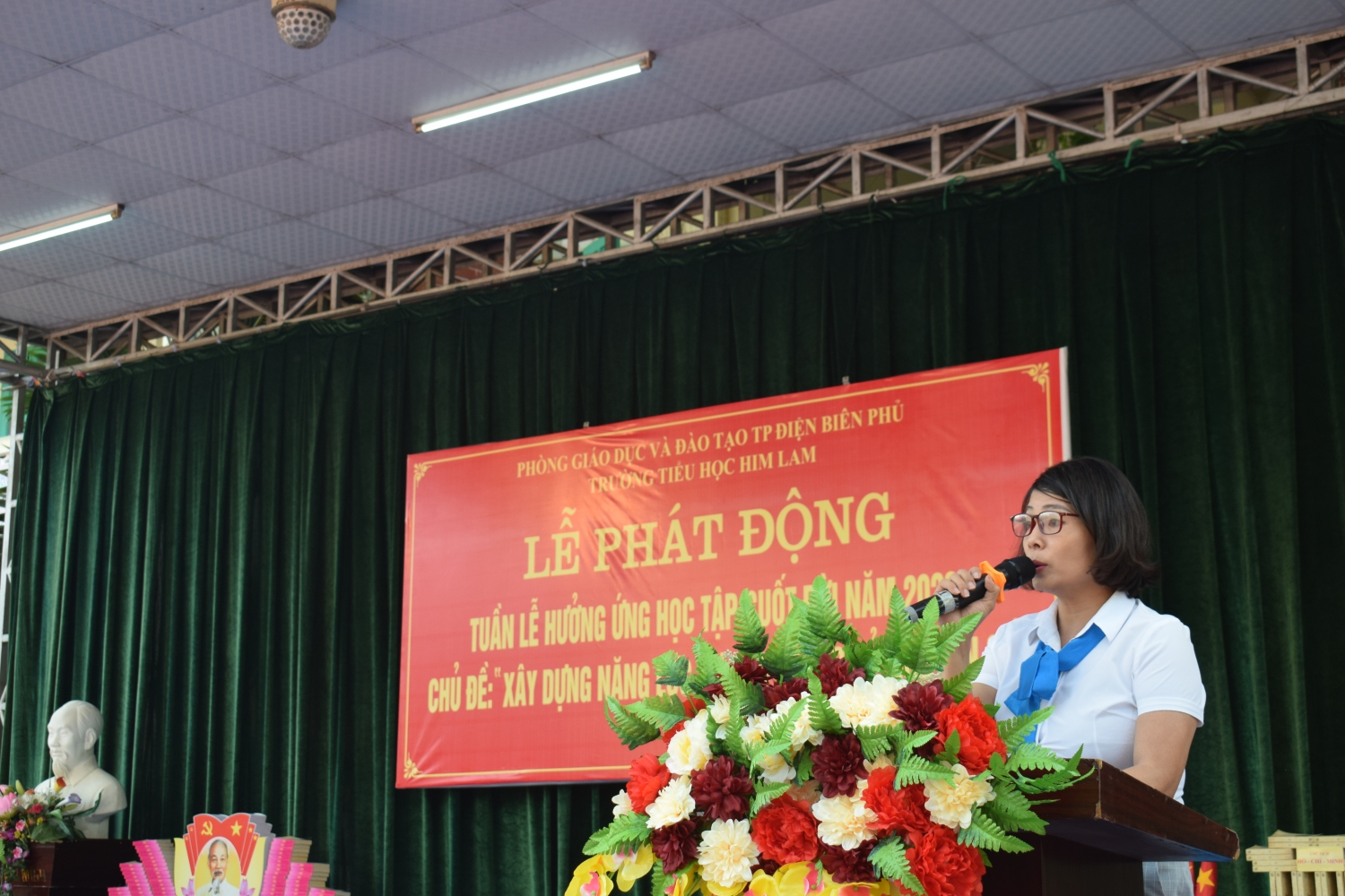 Về dự Lễ khai mạc có Đồng chí Nguyễn Thị Lan – Phó Chủ tịch UBND phường Him Lam, đ/c Phạm Đình Tuân – Phó trưởng phòng nghiệp vụ Thư viện tỉnh Điện Biên, các đồng chí trong BGH, các bậc phụ huynh, các thầy giáo, cô giáo cùng 1080 em học sinh nhà trường.